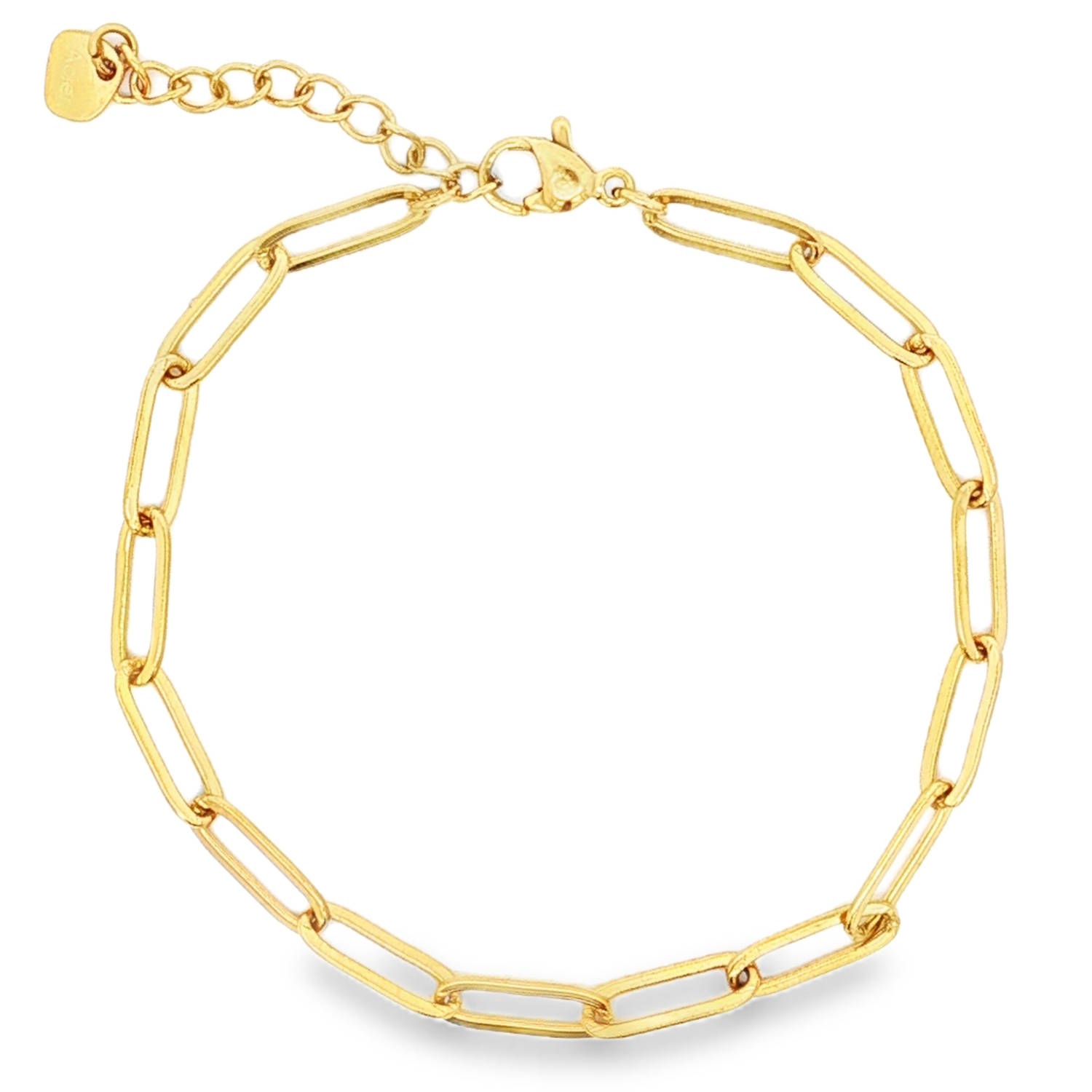 Rehaussez votre poignet avec ce bracelet chaîne en acier doré, une pièce délicate et raffinée. Ses maillons distinctifs, conçus avec précision, offrent une brillance chaleureuse et un style contemporain. Un accessoire idéal pour ajouter une touche d'éclat subtile à votre tenue.