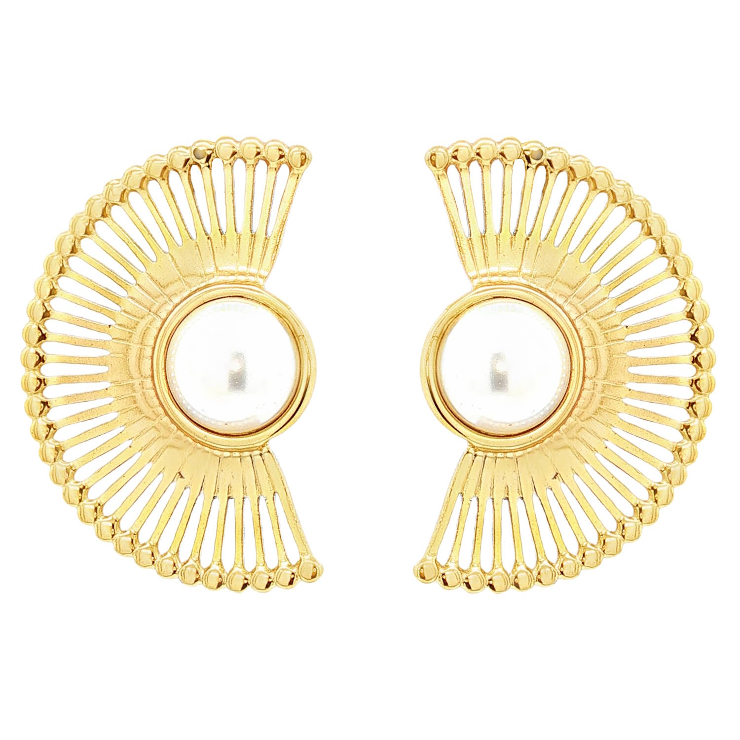 Description Sublimes boucles d'oreilles pendantes, conçues en acier doré rayonnant, illuminées par des perles d'imitation rondes de type cabochon. Leur design singulier offre une esthétique à la fois moderne et intemporelle, idéale pour rehausser votre élégance au quotidien. Largeur 28 mm Hauteur 40 mm Matière(s) Acier , Perle synthétique . L'acier utilisé dans la bijouterie existe sous plusieurs qualités. Nous utilisons principalement la qualité 316L, qualité qui est utilisée en chirurgie. Cet acier est donc inoxydable et reste très résistant. Fermoir Tiges poussettes Couleur(s) dominante(s) Blanc , Doré Public Adolescent , Adulte . Genre Femme , Fille . Saison Indémodable . Cliquez sur une matière, un thème, une couleur ou une collection pour voir tous les articles associés.
