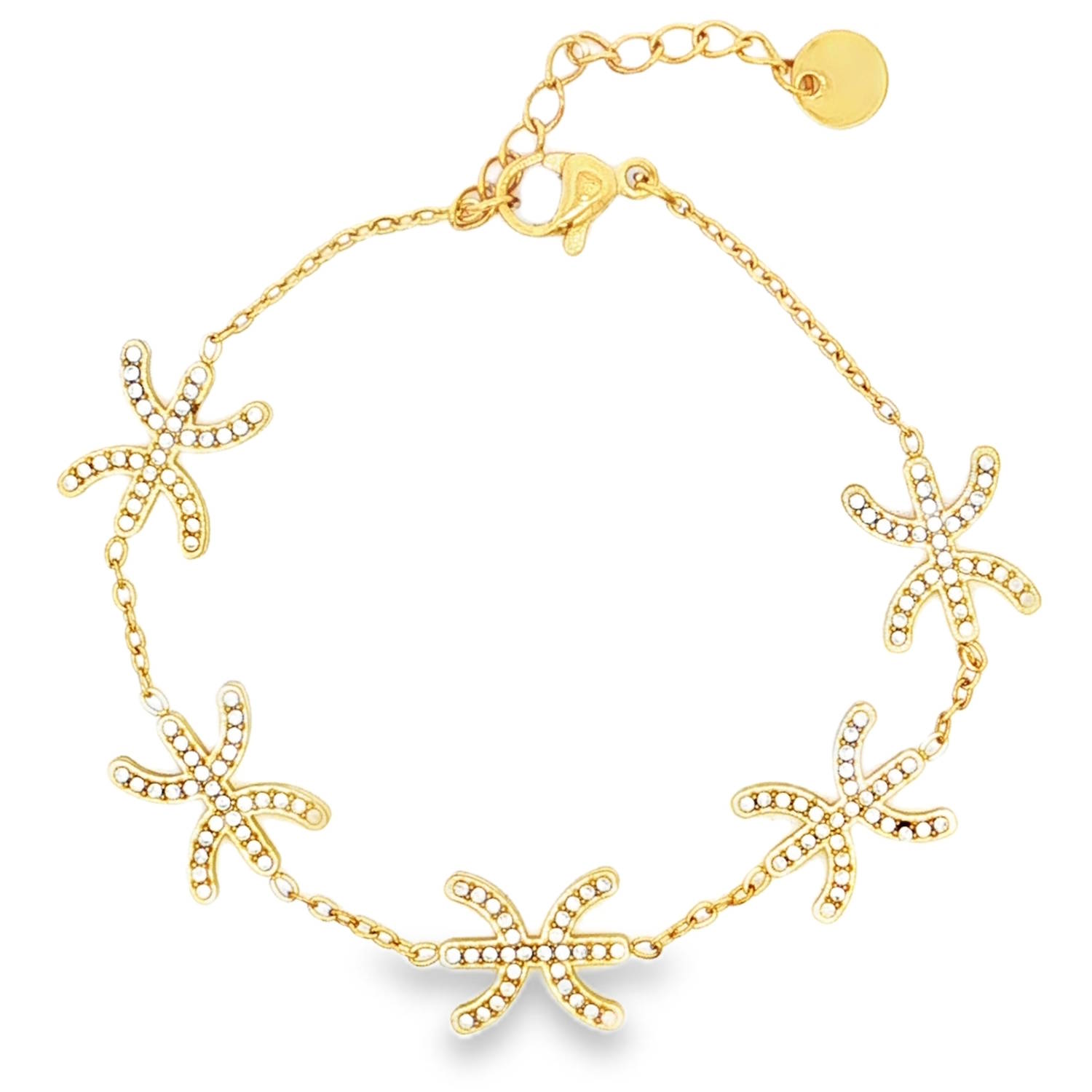 La monture en acier doré souligne l'éclat et la transparence des strass.