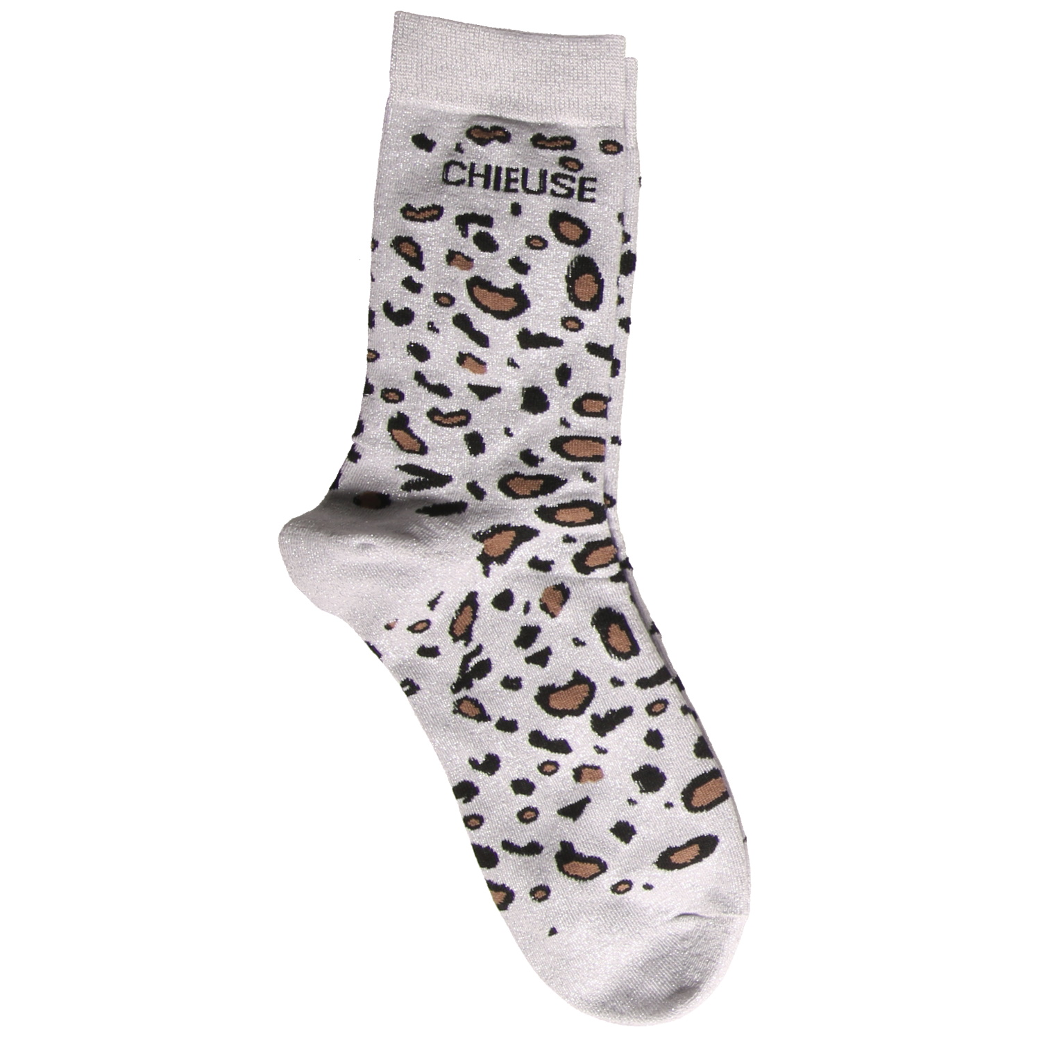 Paire de chaussettes scintillantes avec l'inscription Chieuse avec des motifs léopard.