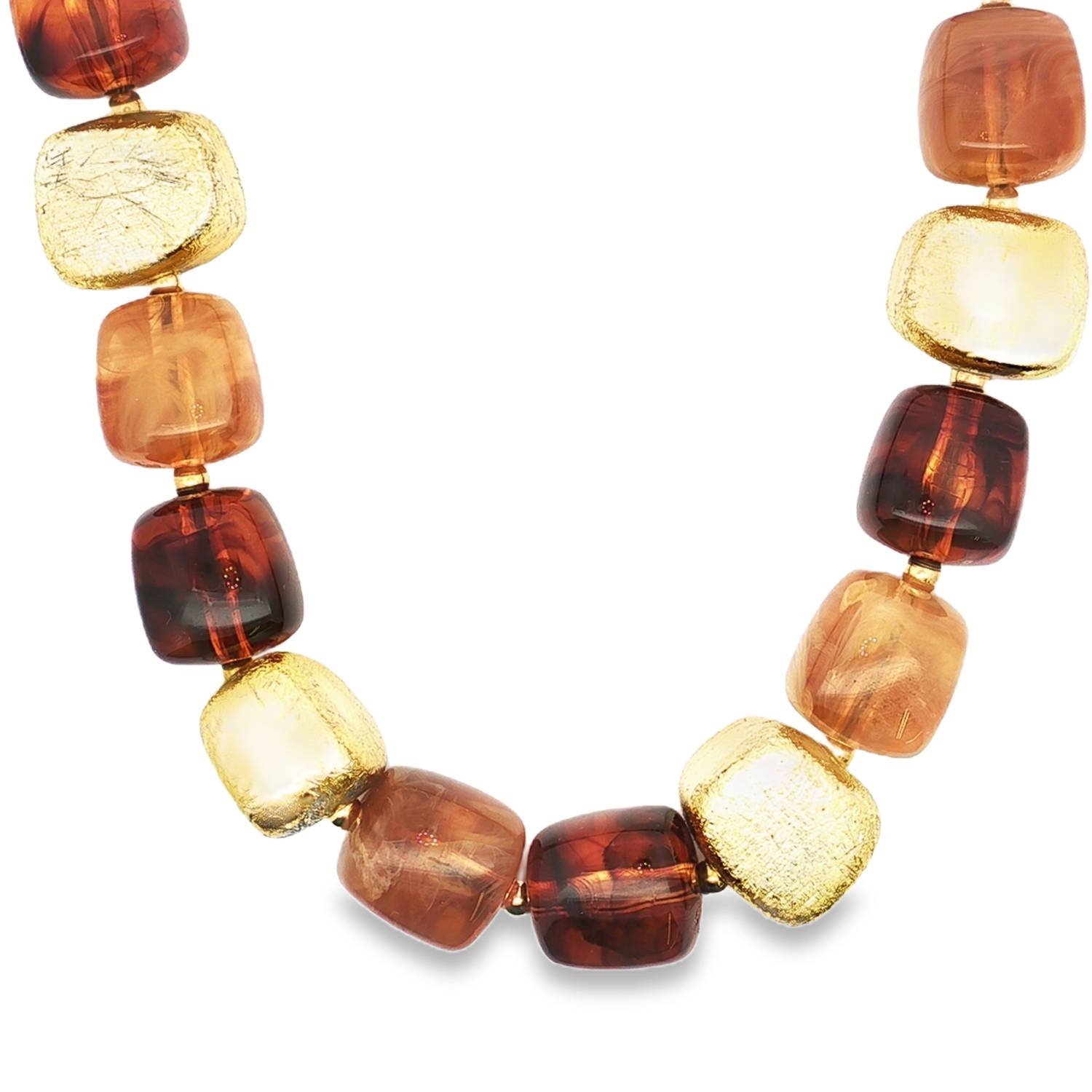 Chaque perle, aux teintes riches et nuances captivantes, est méticuleusement enfilée pour créer une pièce harmonieuse.