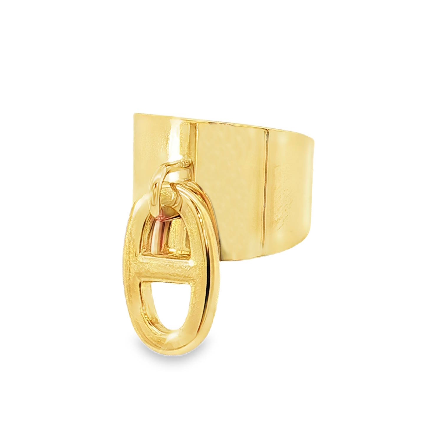 Description Affirmez votre style avec cette audacieuse bague large en acier doré, une déclaration de luxe minimaliste. Son design épuré est rehaussé d'un grain de café emblématique suspendu, ajoutant une touche d'originalité. Parfaite pour celles qui osent l'élégance. Taille ajustable. Largeur 15 mm Matière(s) Acier . L'acier utilisé dans la bijouterie existe sous plusieurs qualités. Nous utilisons principalement la qualité 316L, qualité qui est utilisée en chirurgie. Cet acier est donc inoxydable et reste très résistant. Fermoir Aucun À noter Pendant 10x18 mm Couleur(s) dominante(s) Doré Public Adolescent , Adulte . Genre Femme , Fille . Saison Indémodable . Cliquez sur une matière, un thème, une couleur ou une collection pour voir tous les articles associés.