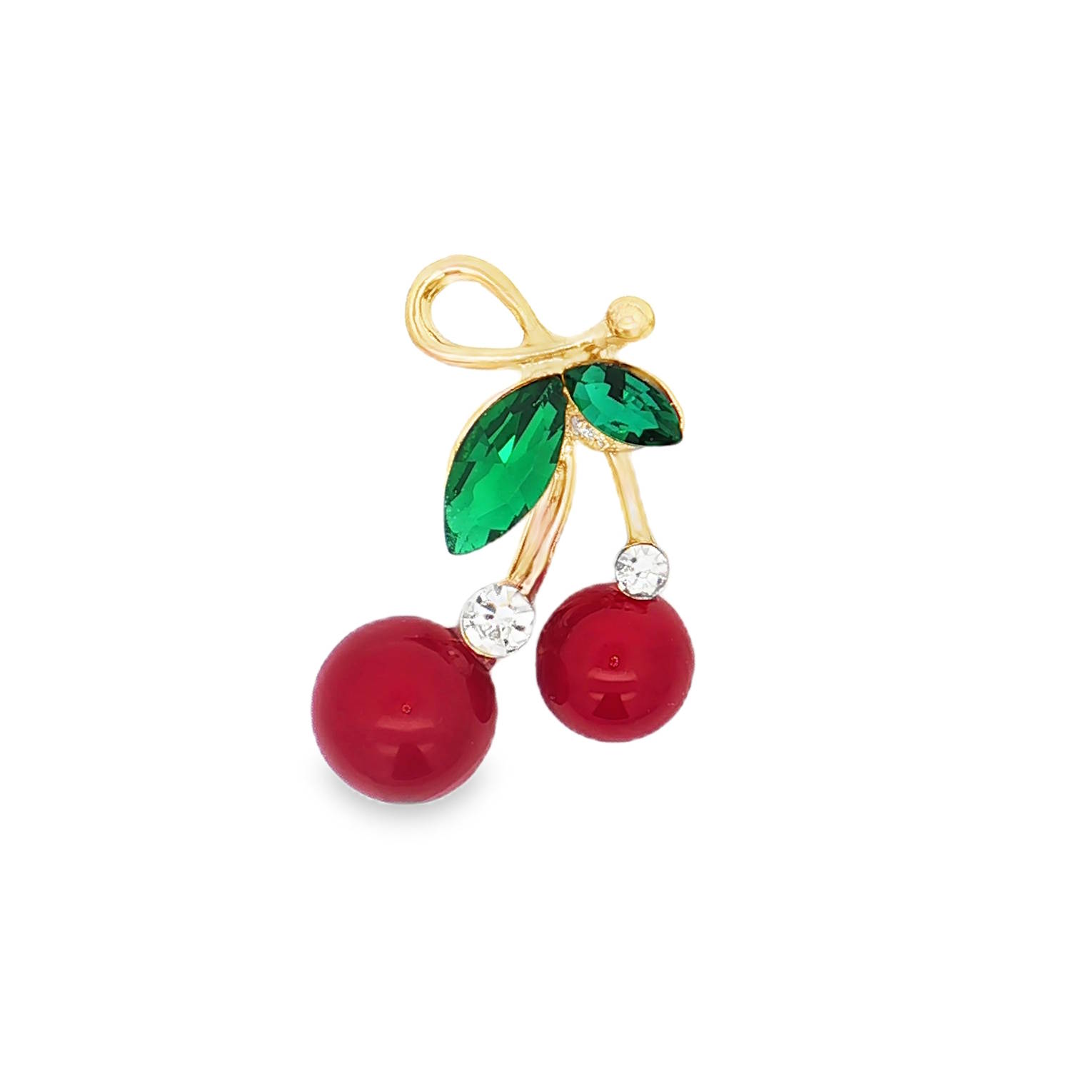 Les cristaux rouges taillés en cabochon reflètent la lumière avec éclat, tandis que les feuilles vertes apportent une touche de fraîcheur.