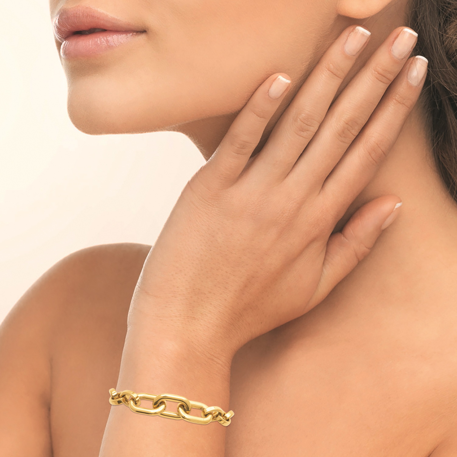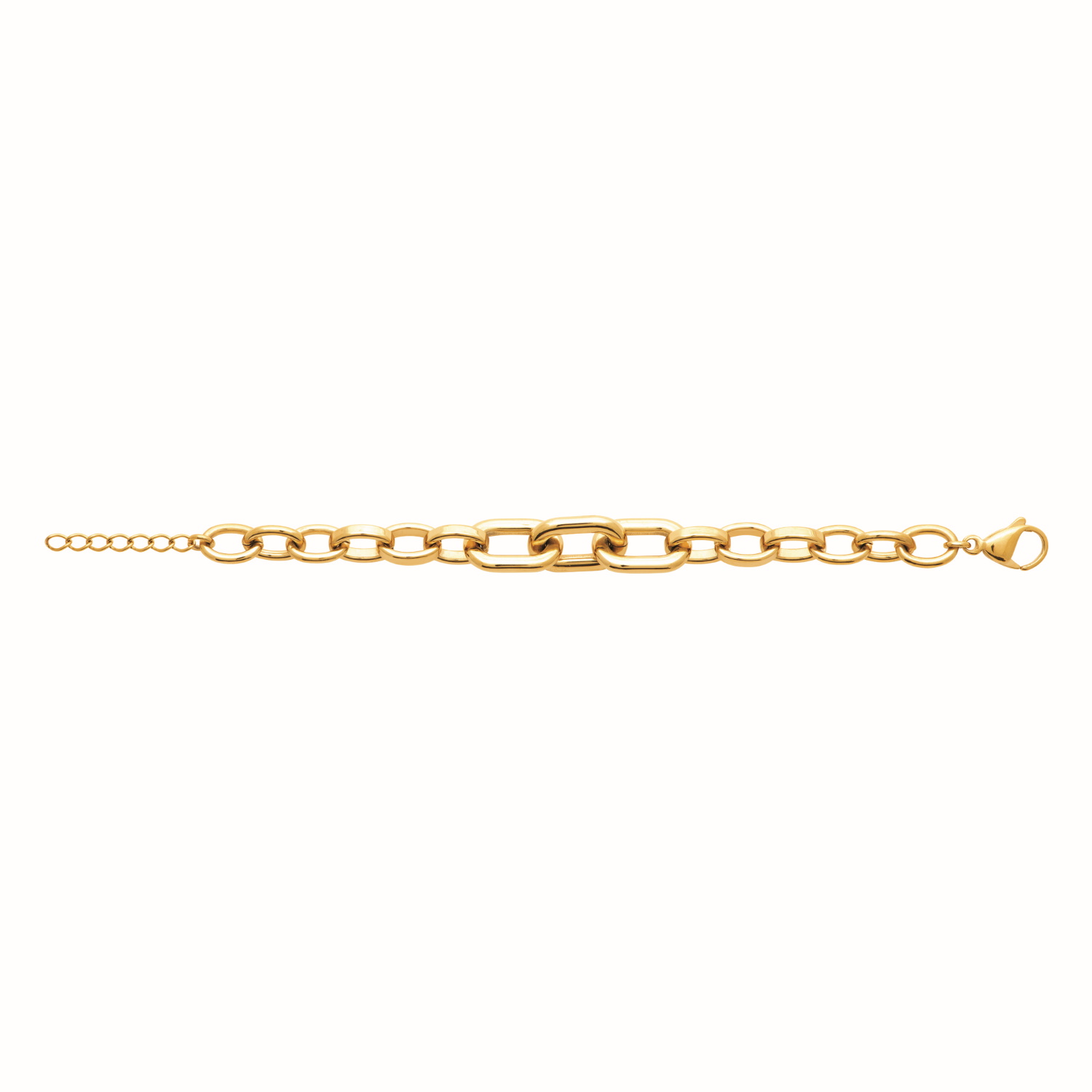 Description Bracelet chaîne gros maillons en acier doré. Fermoir mousqueton avec 3 cm de rallonge. Longueur 17+3 cm [Guide des tailles] Largeur 14 mm Matière(s) Acier . L'acier utilisé dans la bijouterie existe sous plusieurs qualités. Nous utilisons principalement la qualité 316L, qualité qui est utilisée en chirurgie. Cet acier est donc inoxydable et reste très résistant. Fermoir Mousqueton Couleur(s) dominante(s) Doré Public Adolescent , Adulte . Genre Femme , Fille . Saison Indémodable . Cliquez sur une matière, un thème, une couleur ou une collection pour voir tous les articles associés.