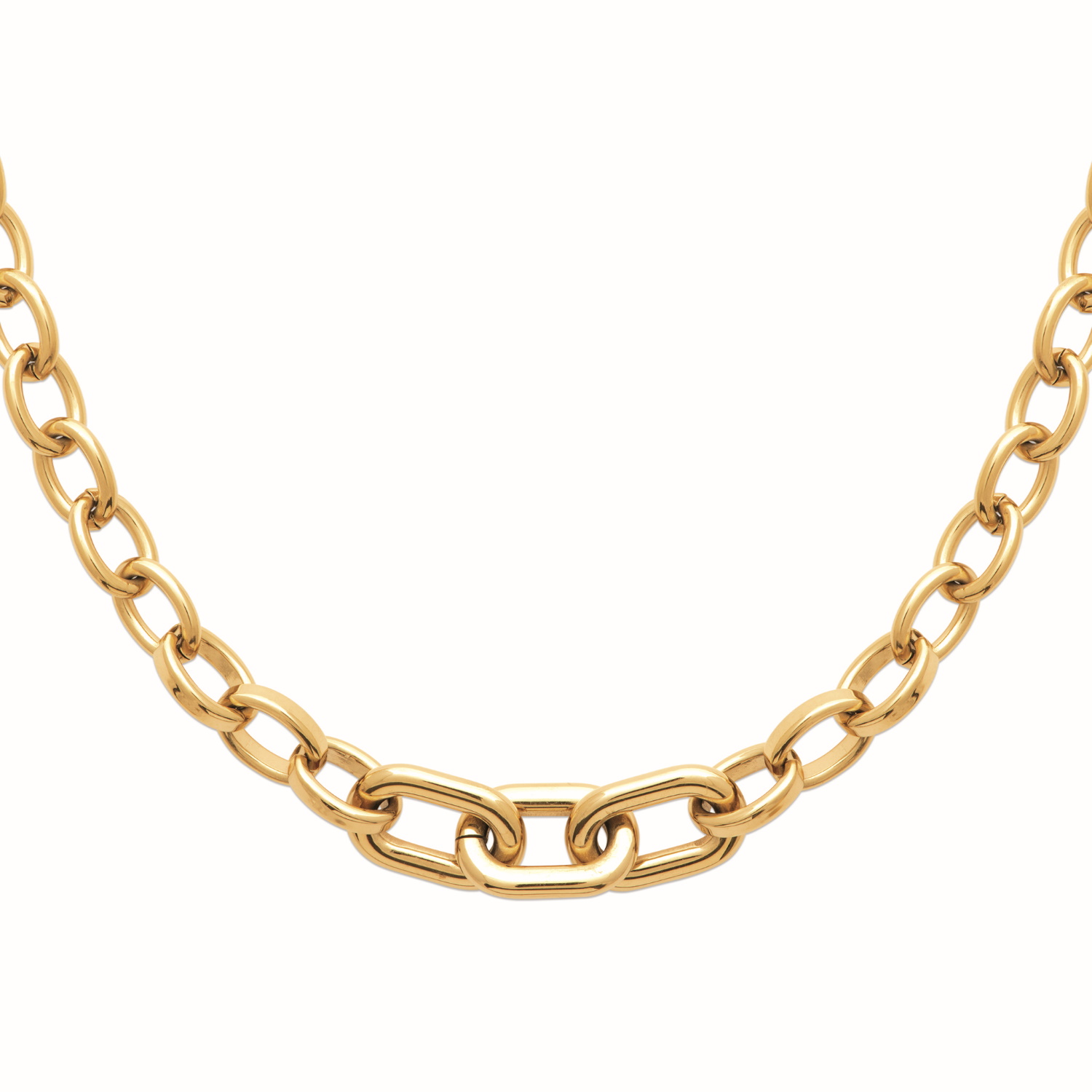 Description Collier chaîne gros maillons en acier doré. Fermoir mousqueton avec 5 cm de rallonge. Longueur 43+5 cm [Guide des tailles] Largeur 14 mm Matière(s) Acier . L'acier utilisé dans la bijouterie existe sous plusieurs qualités. Nous utilisons principalement la qualité 316L, qualité qui est utilisée en chirurgie. Cet acier est donc inoxydable et reste très résistant. Fermoir Mousqueton Couleur(s) dominante(s) Doré Public Adolescent , Adulte . Genre Femme , Fille . Saison Indémodable . Cliquez sur une matière, un thème, une couleur ou une collection pour voir tous les articles associés.