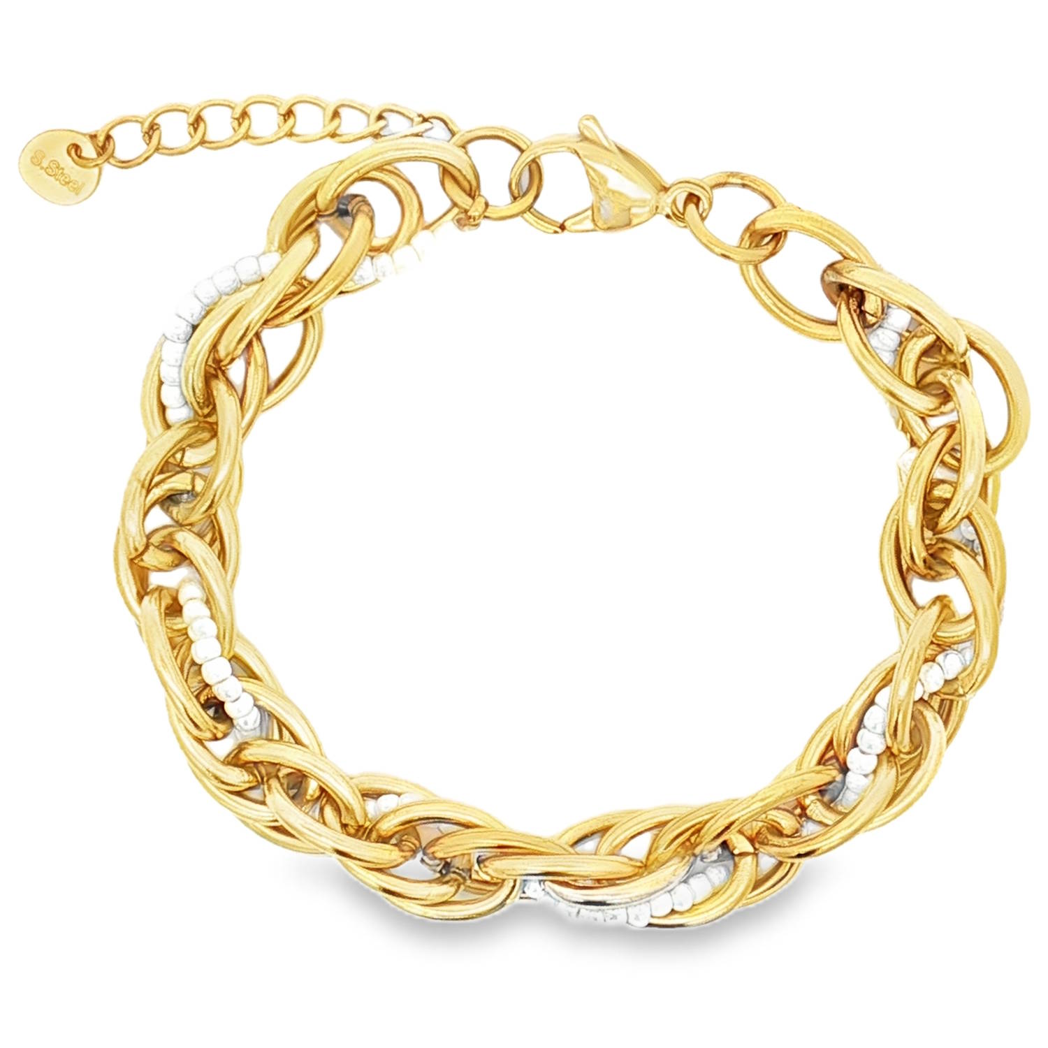 Description Rehaussez votre style avec ce bracelet chaîne en acier doré, orné de perles délicates. Les perles, soigneusement sélectionnées, offrent un contraste subtil et élégant avec l'éclat chaleureux du doré. Ce bijou raffiné est idéal pour ajouter une touche de sophistication à votre quotidien ou pour compléter une tenue de soirée. Longueur 17+3 cm [Guide des tailles] Largeur 9 mm Matière(s) Acier , Rocaille . L'acier utilisé dans la bijouterie existe sous plusieurs qualités. Nous utilisons principalement la qualité 316L, qualité qui est utilisée en chirurgie. Cet acier est donc inoxydable et reste très résistant. Fermoir Mousqueton Couleur(s) dominante(s) Blanc , Doré Public Adolescent , Adulte . Genre Femme , Fille . Saison Indémodable . Cliquez sur une matière, un thème, une couleur ou une collection pour voir tous les articles associés.