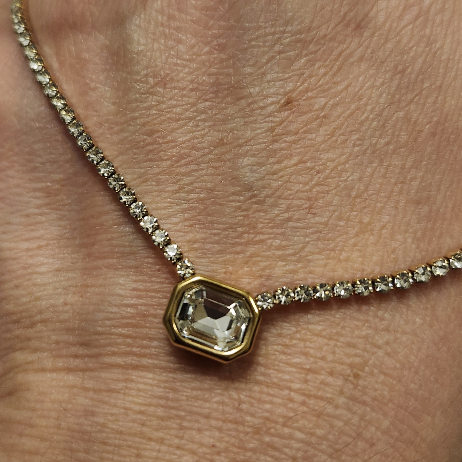 Description Ce collier pendentif exquis en acier doré est orné d'un cristal de taille émeraude à degrés. Sa clarté impeccable et sa symétrie confèrent un éclat exceptionnel. Un design délicat qui offre une composition charmante, idéale pour ajouter une touche d'élégance discrète à votre collection de bijoux. Longueur 39+5 cm [Guide des tailles] Largeur 8 mm Matière(s) Acier , Verre . L'acier utilisé dans la bijouterie existe sous plusieurs qualités. Nous utilisons principalement la qualité 316L, qualité qui est utilisée en chirurgie. Cet acier est donc inoxydable et reste très résistant. Fermoir Mousqueton Couleur(s) dominante(s) Doré Public Adolescent , Adulte . Genre Femme , Fille . Saison Indémodable . Cliquez sur une matière, un thème, une couleur ou une collection pour voir tous les articles associés.