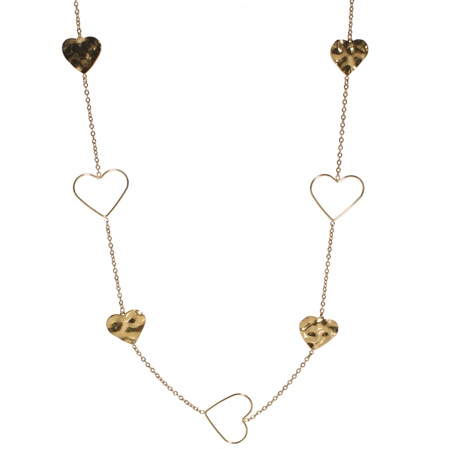 Description Collier sautoir composé d'une chaîne et de cœurs ajourés et martelés en acier doré. Fermoir mousqueton avec 5 cm de rallonge. Longueur 90+5 cm [Guide des tailles] Largeur 30 mm Matière(s) Acier . L'acier utilisé dans la bijouterie existe sous plusieurs qualités. Nous utilisons principalement la qualité 316L, qualité qui est utilisée en chirurgie. Cet acier est donc inoxydable et reste très résistant. Fermoir Mousqueton Couleur(s) dominante(s) Doré Public Adolescent , Adulte . Genre Femme , Fille . Saison Indémodable . Thème(s) Amour . Cliquez sur une matière, un thème, une couleur ou une collection pour voir tous les articles associés.
