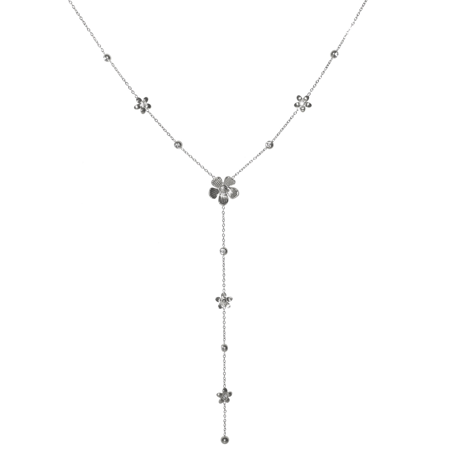 Description Collier sautoir de forme Y ornée de fleurs en acier argenté serties de strass et de cristaux sertis clos. Fermoir mousqueton avec 5 cm de rallonge. Cliquez sur une matière, un thème, une couleur ou une collection pour voir tous les articles associés.