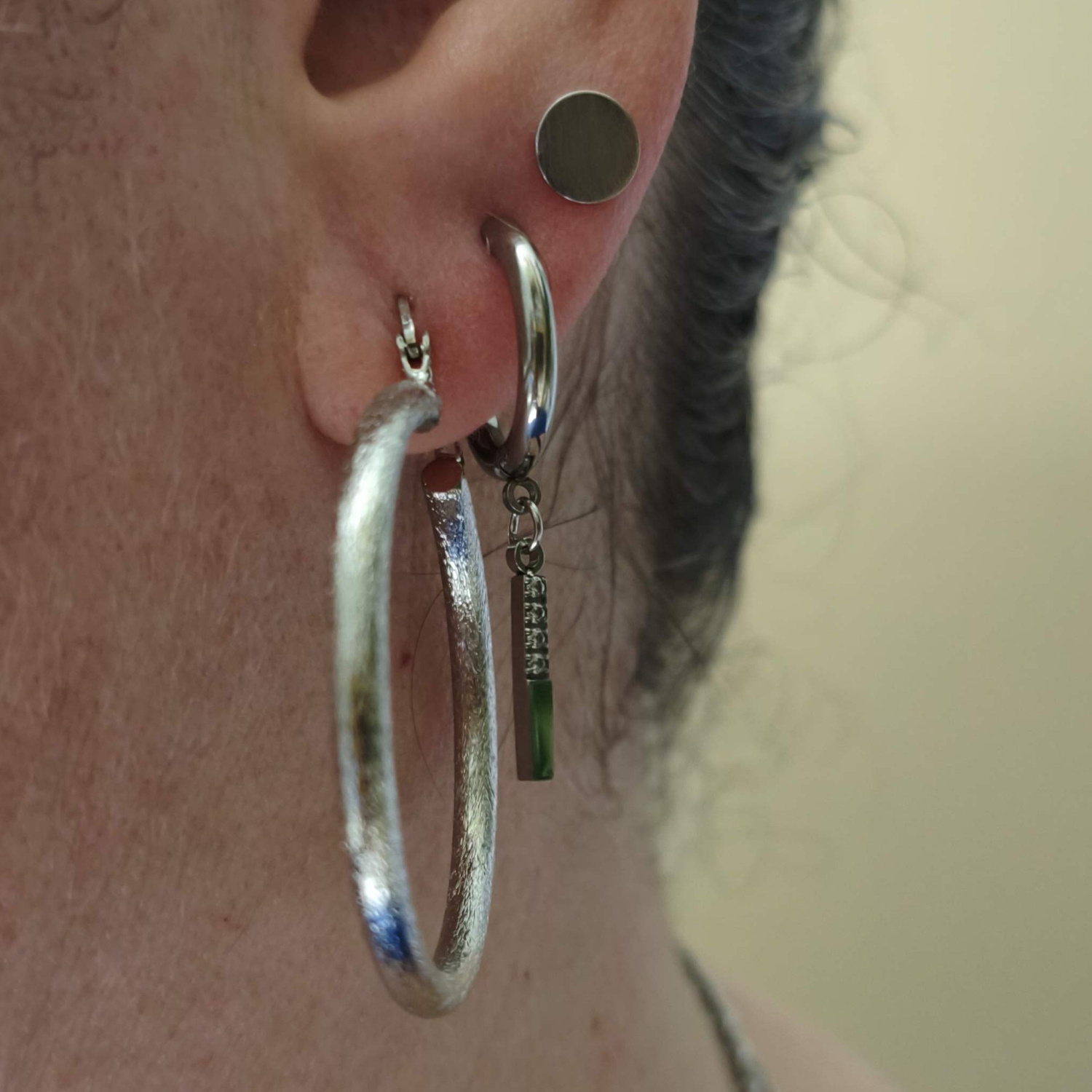 Description Arborez un style épuré et moderne avec ces boucles d'oreilles créoles en acier argenté. Leur design classique en forme de cercle et leur finition subtilement texturée apportent une touche d'élégance discrète à toute tenue. Légères et confortables, elles sont parfaites pour un usage quotidien ou pour compléter une allure sophistiquée. Largeur 3 mm Diamètre 35/40 mm [Guide des tailles] Matière(s) Acier . L'acier utilisé dans la bijouterie existe sous plusieurs qualités. Nous utilisons principalement la qualité 316L, qualité qui est utilisée en chirurgie. Cet acier est donc inoxydable et reste très résistant. Fermoir Charnière Couleur(s) dominante(s) Argenté Public Adolescent , Adulte . Genre Femme , Fille . Saison Indémodable . Cliquez sur une matière, un thème, une couleur ou une collection pour voir tous les articles associés.