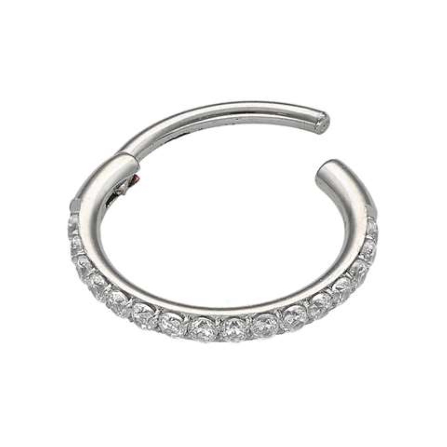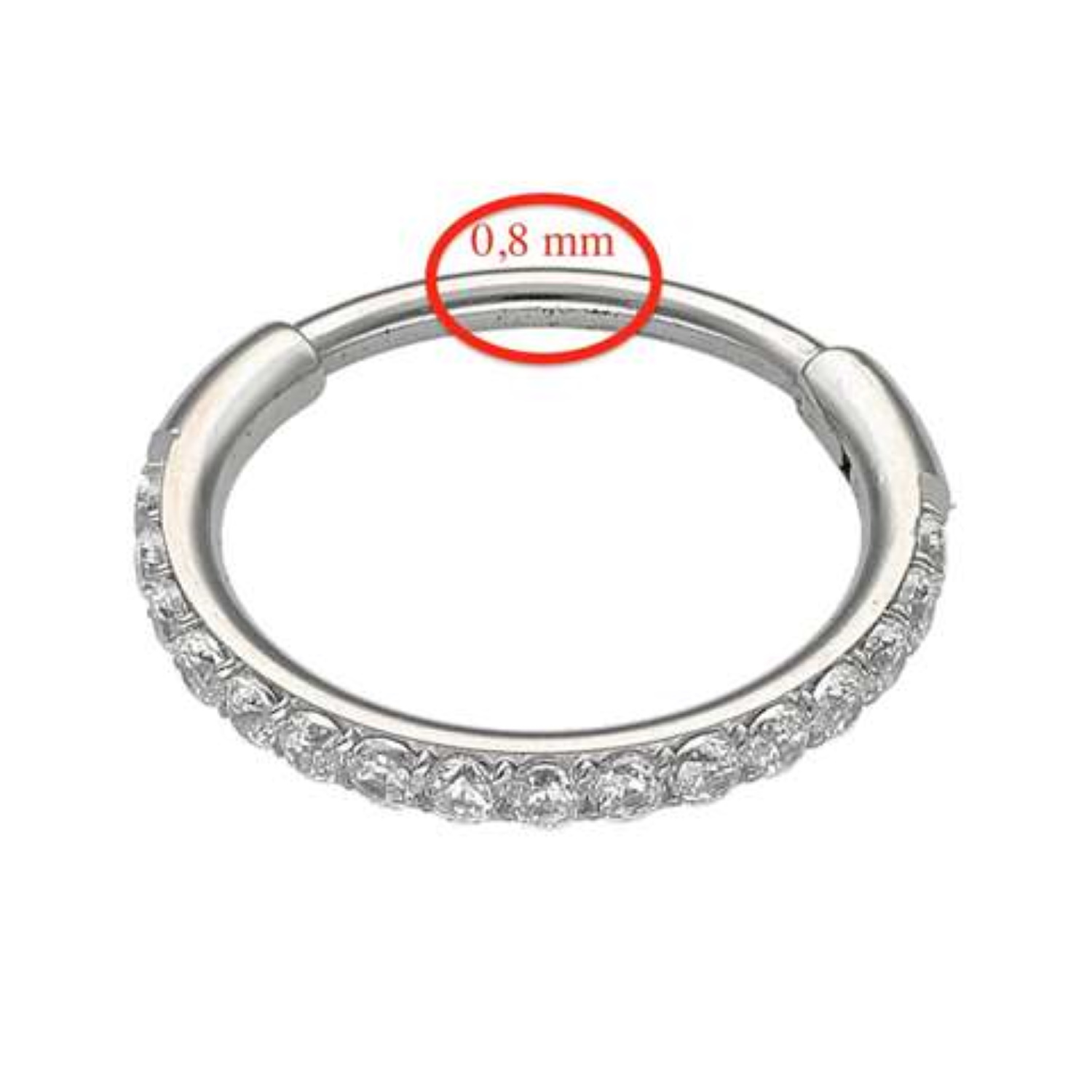 Piercing pour nez ou oreille en acier chirurgical argenté serti d'oxydes de zirconium blancs.