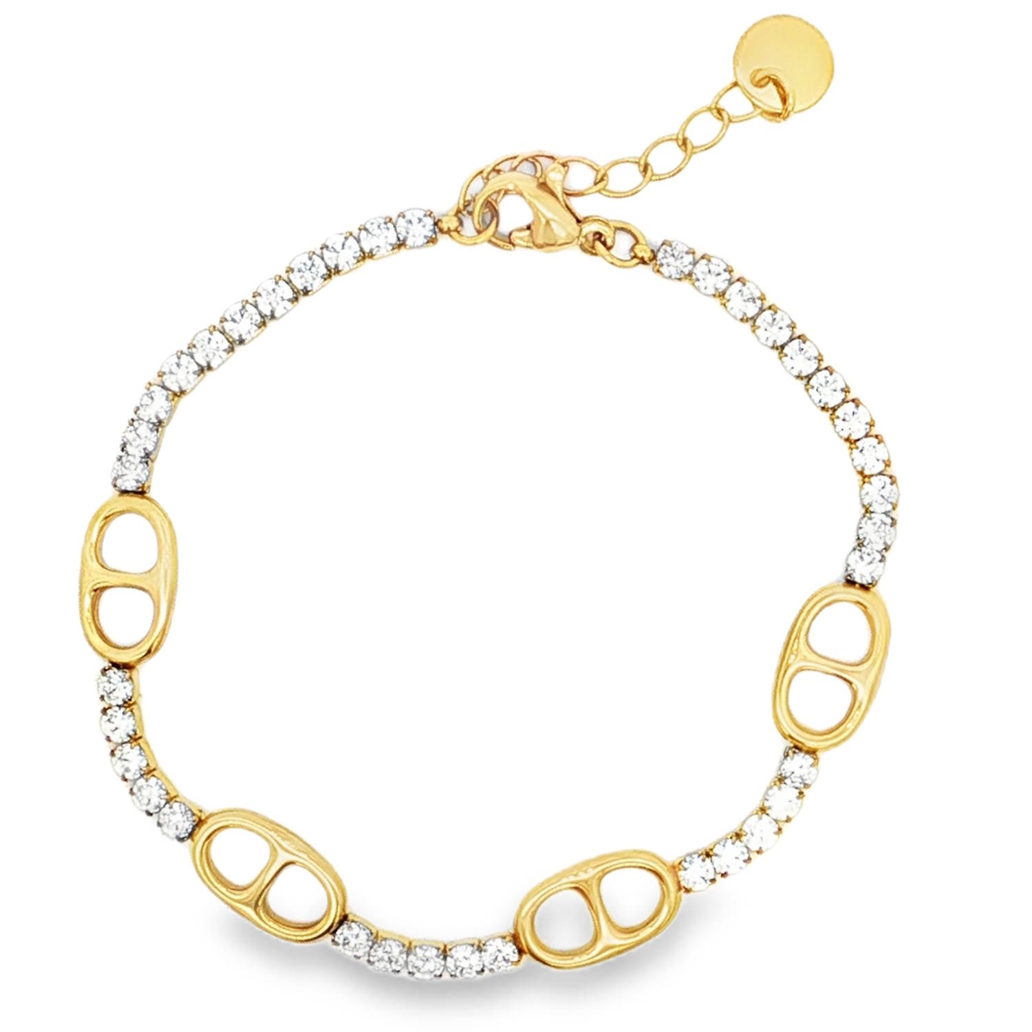 Description Sublime bracelet chaîne en acier doré, orné d'une ligne scintillante de strass ronds taille brillant. Une création luxueuse et raffinée, rehaussée par des détails soignés. Ce bijou captivant, idéal pour sublimer votre poignet avec élégance et distinction, apporte une touche de lumière étincelante à votre allure. Fermoir mousqueton avec 3 cm de rallonge. Longueur 16+3 cm [Guide des tailles] Largeur 7 mm Matière(s) Acier , Verre . L'acier utilisé dans la bijouterie existe sous plusieurs qualités. Nous utilisons principalement la qualité 316L, qualité qui est utilisée en chirurgie. Cet acier est donc inoxydable et reste très résistant. Fermoir Mousqueton Couleur(s) dominante(s) Doré Public Adolescent , Adulte . Genre Femme , Fille . Saison Indémodable . Cliquez sur une matière, un thème, une couleur ou une collection pour voir tous les articles associés.