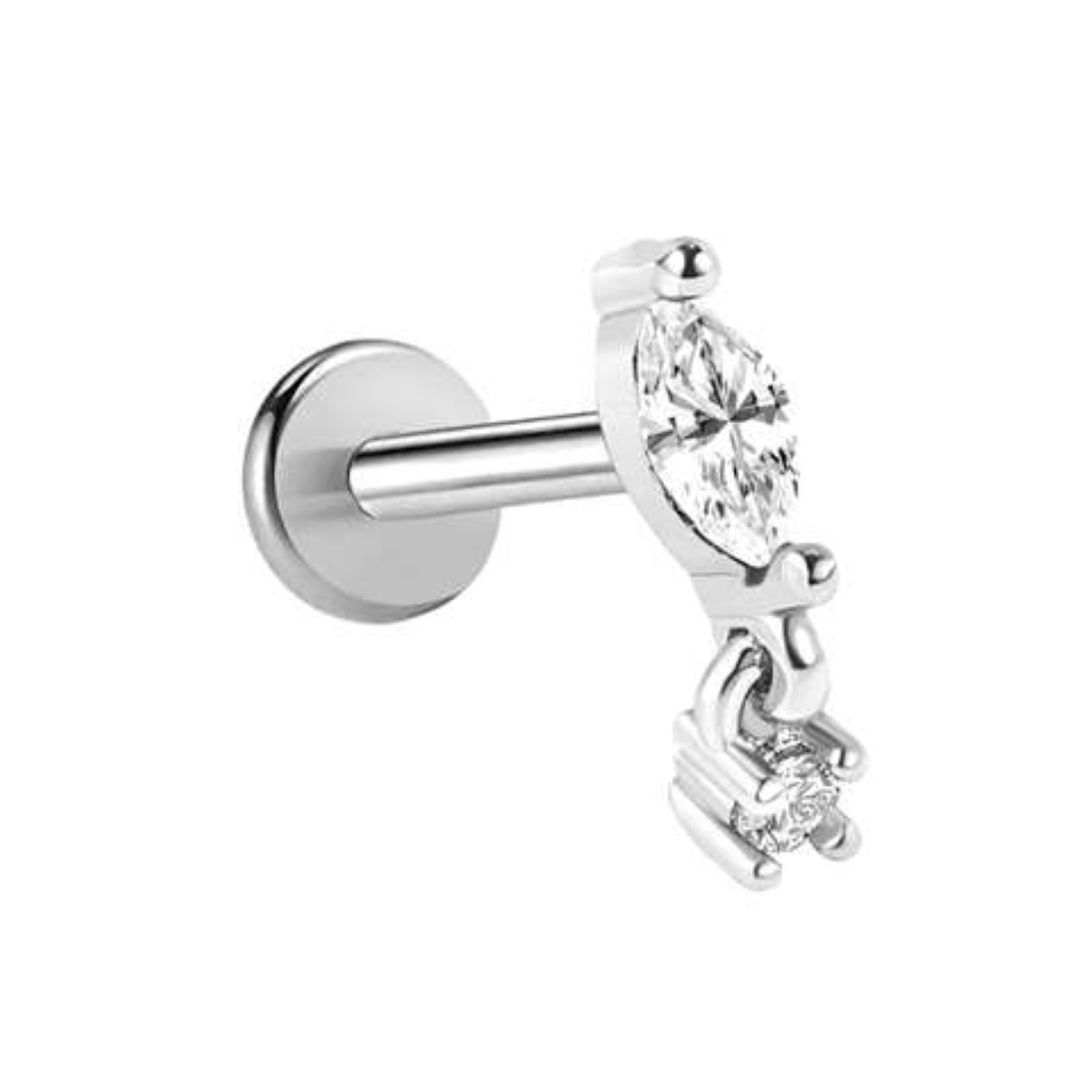 Description Piercing en acier chirurgical argenté orné de cristaux. Longueur 7 mm [Guide des tailles] Largeur 9 mm Diamètre 1.2 mm Matière(s) Acier , Verre . L'acier utilisé dans la bijouterie existe sous plusieurs qualités. Nous utilisons principalement la qualité 316L, qualité qui est utilisée en chirurgie. Cet acier est donc inoxydable et reste très résistant. Fermoir A vis Couleur(s) dominante(s) Argenté Public Adolescent , Adulte . Genre Femme , Fille . Saison Indémodable . Cliquez sur une matière, un thème, une couleur ou une collection pour voir tous les articles associés.