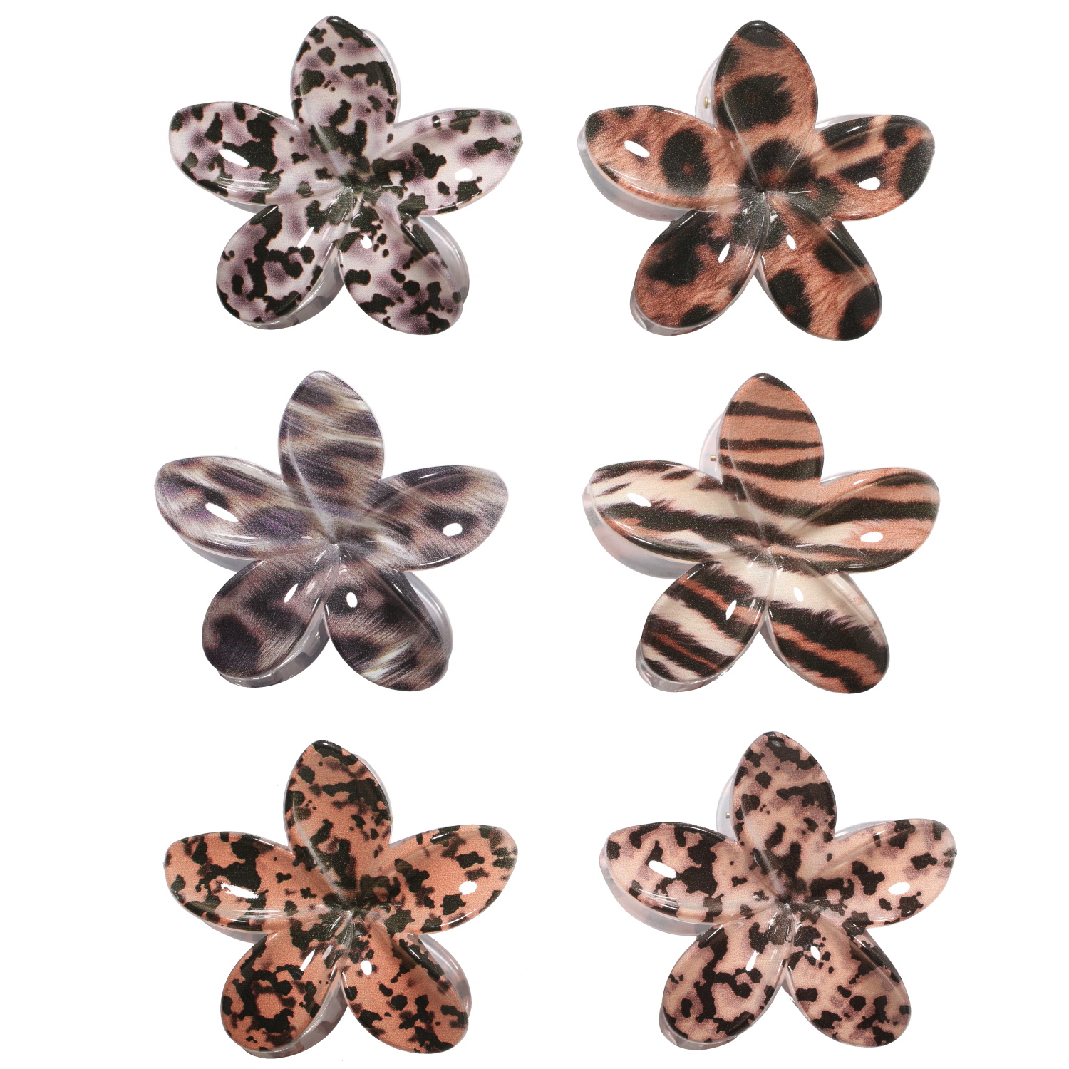 Description Pince crabe pour cheveux en forme de fleur en plastique de couleur tachetée. 6 coloris différents. Vendu à l'unité. Votre préférence en commentaires. Cliquez sur une matière, un thème, une couleur ou une collection pour voir tous les articles associés.