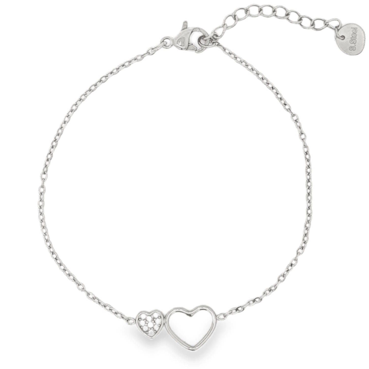 Description Ce délicat bracelet chaîne en acier argenté est agrémenté de deux cœurs, l'un pavé de strass taille brillant et l'autre ajouré. Un bijou raffiné, symbole d'amour et d'élégance discrète, parfait pour sublimer le poignet avec une touche précieuse et romantique. Fermoir mousqueton avec 3 cm de rallonge. Longueur 16+3 cm [Guide des tailles] Largeur 9 mm Matière(s) Acier , Verre . L'acier utilisé dans la bijouterie existe sous plusieurs qualités. Nous utilisons principalement la qualité 316L, qualité qui est utilisée en chirurgie. Cet acier est donc inoxydable et reste très résistant. Fermoir Mousqueton Couleur(s) dominante(s) Argenté Public Adolescent , Adulte . Genre Femme , Fille . Saison Indémodable . Thème(s) Amour . Cliquez sur une matière, un thème, une couleur ou une collection pour voir tous les articles associés.