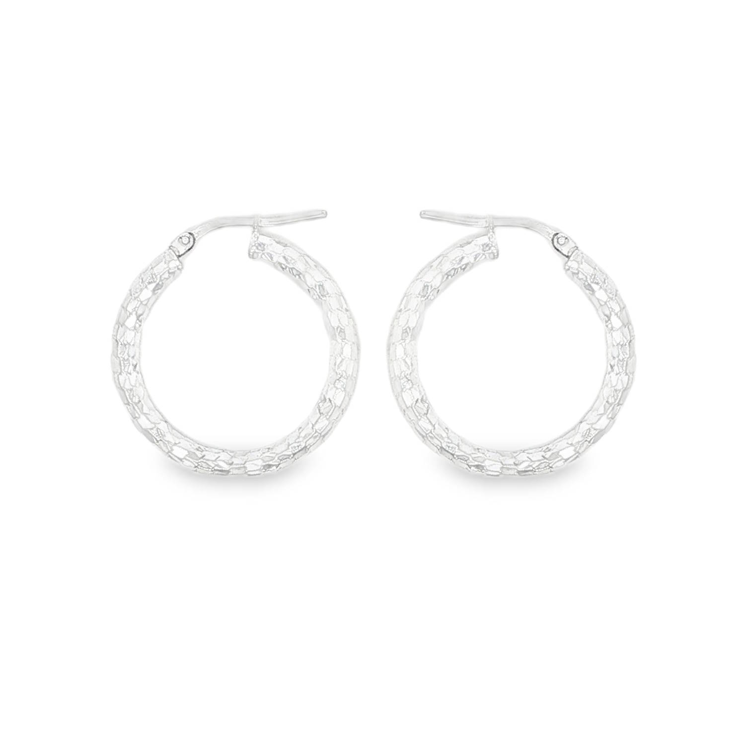 Ajoutez une touche d'éclat à votre collection avec ces élégantes créoles en argent 925/000.<br/>Leur design texturé unique et leur fini brillant captent la lumière à chaque mouvement, offrant une esthétique sophistiquée et discrète. <br/>Parfaites pour une utilisation quotidienne ou pour compléter une tenue de soirée. Créoles Rond  Adolescent Adulte Femme Fille Indémodable