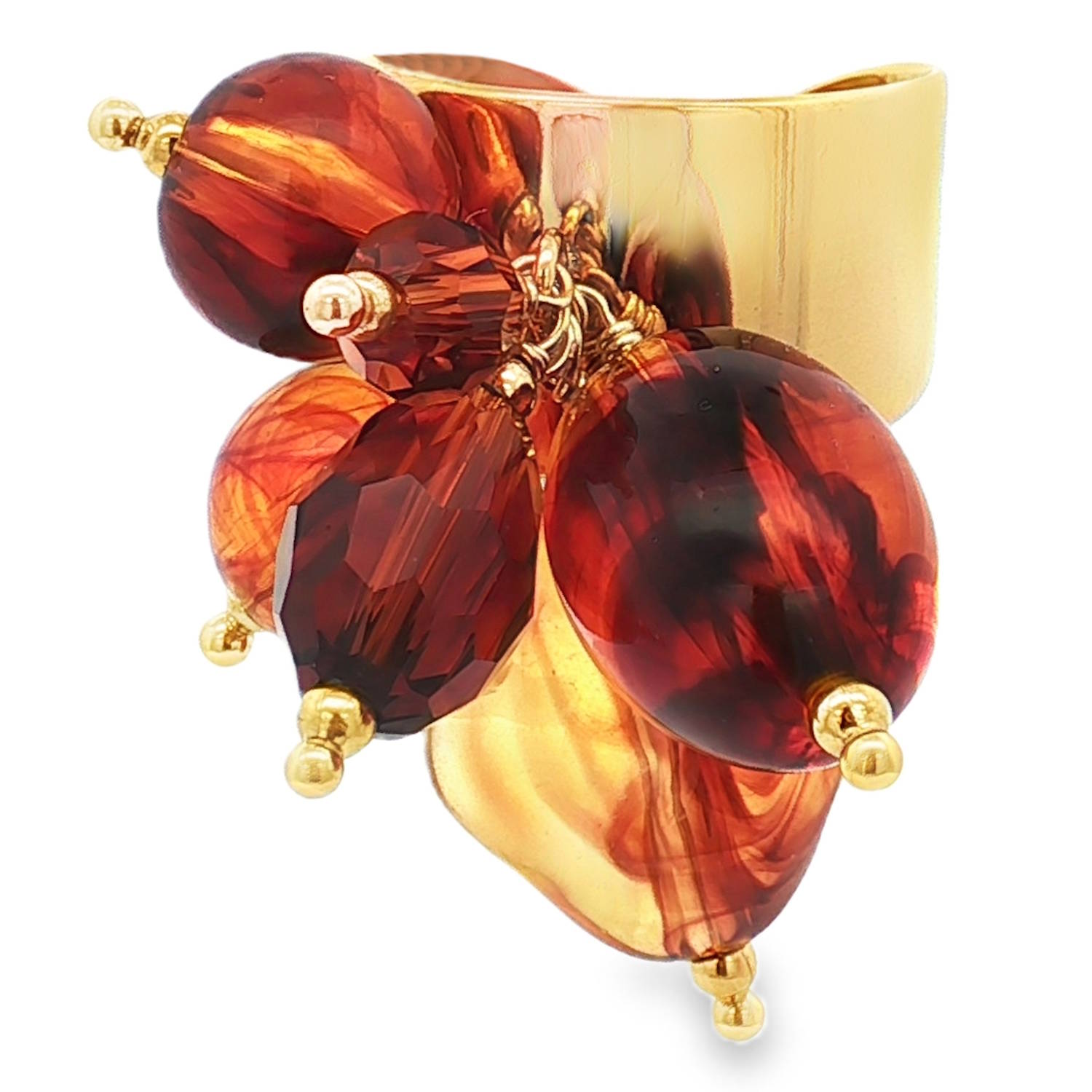 Description Cette bague cocktail en acier doré arbore un design audacieux avec des perles de couleur ambre rondes cabochon. La couleur orange chaude de l'ambre est mise en valeur par le lustre du doré, créant un contraste saisissant. Une pièce unique qui apportera une touche de couleur et d'originalité à votre collection de bijoux. Taille ajustable. Largeur 12/32 mm Matière(s) Acier , Résine . L'acier utilisé dans la bijouterie existe sous plusieurs qualités. Nous utilisons principalement la qualité 316L, qualité qui est utilisée en chirurgie. Cet acier est donc inoxydable et reste très résistant. Fermoir Aucun Couleur(s) dominante(s) Doré , Marron Public Adolescent , Adulte . Genre Femme , Fille . Saison Indémodable . Cliquez sur une matière, un thème, une couleur ou une collection pour voir tous les articles associés.