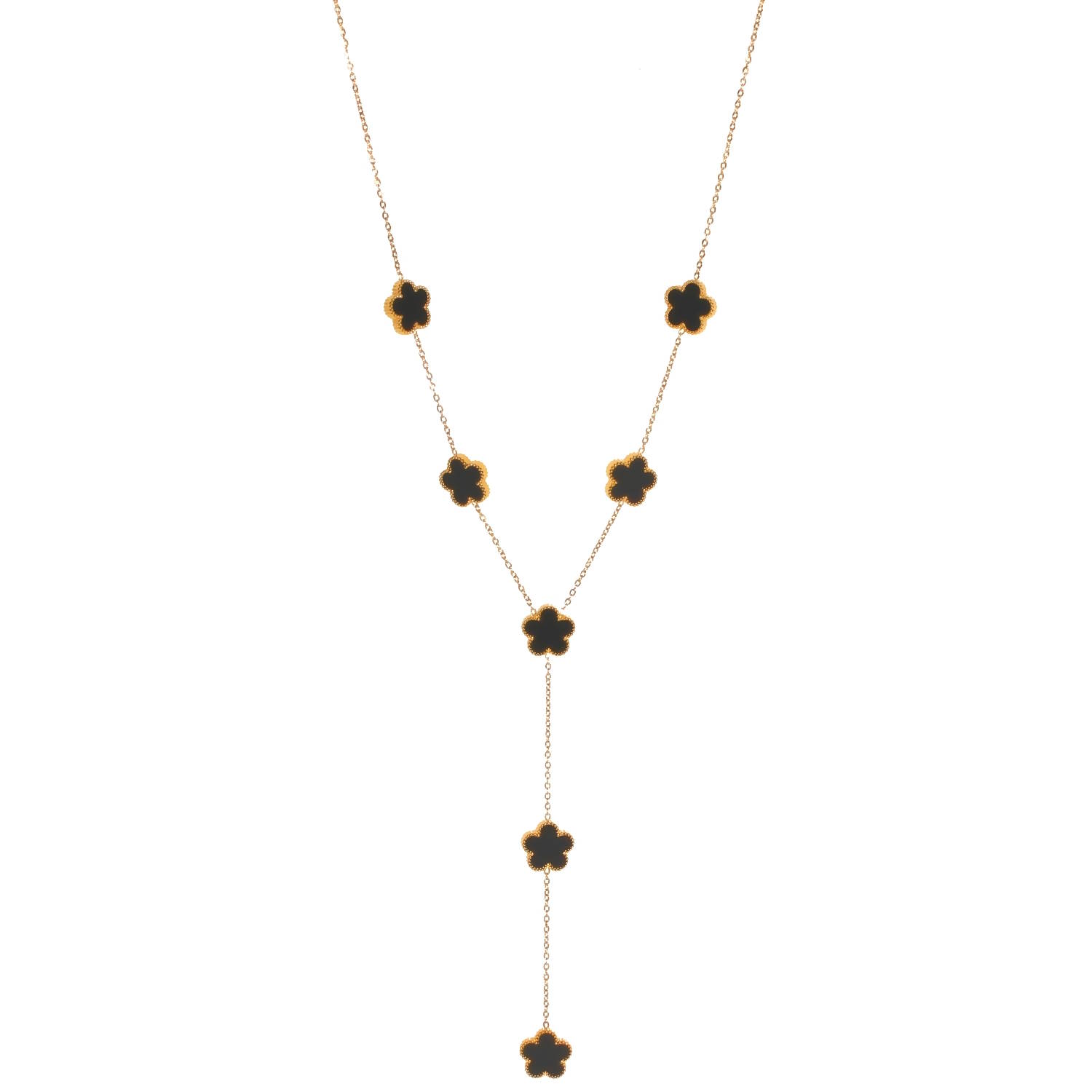 Description Ce délicat collier en acier doré se distingue par sa chaîne fine et ses motifs floraux espacés avec précision. Un bijou subtil et élégant, idéal pour compléter une tenue avec une touche de raffinement discret. Son design en Y apporte une touche de modernité tout en conservant une élégance classique. Cliquez sur une matière, un thème, une couleur ou une collection pour voir tous les articles associés.