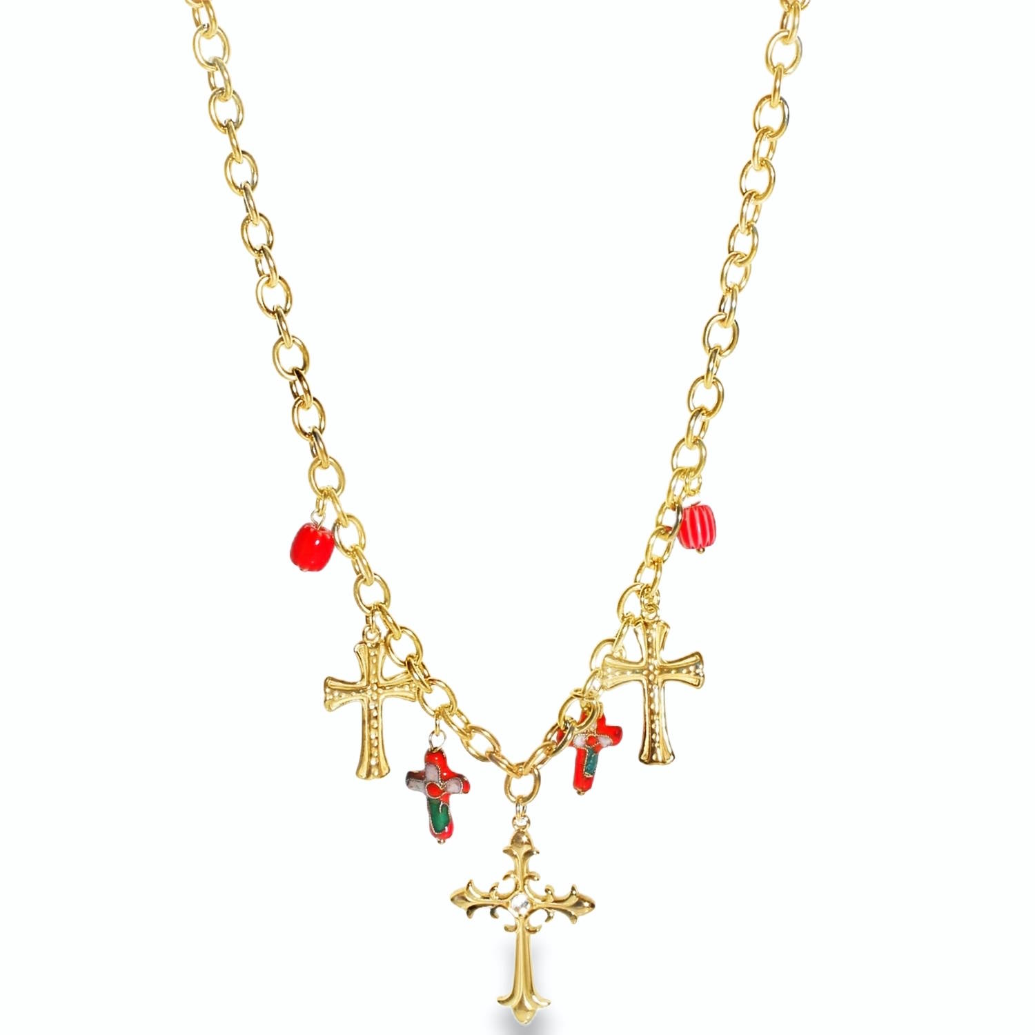 Arborez une élégance audacieuse avec ce collier à breloques en acier doré.