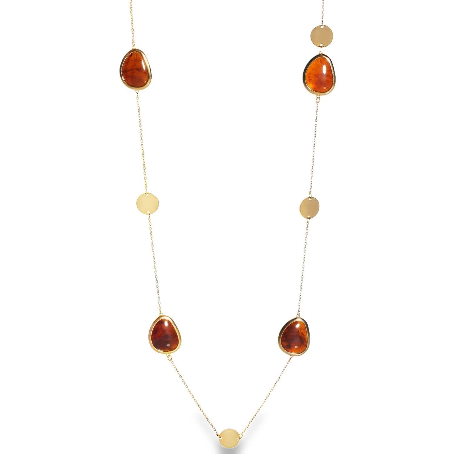 Description Ce collier sautoir en acier doré est orné de cabochons d'ambre rouge orangé. Son design à la fois moderne et intemporel en fait un bijou idéal pour sublimer une tenue de jour comme de soirée. Fermoir mousqueton avec 5 cm de rallonge. Longueur 82+5 cm [Guide des tailles] Largeur 18 mm Matière(s) Acier , Résine . L'acier utilisé dans la bijouterie existe sous plusieurs qualités. Nous utilisons principalement la qualité 316L, qualité qui est utilisée en chirurgie. Cet acier est donc inoxydable et reste très résistant. Fermoir Mousqueton Couleur(s) dominante(s) Doré , Marron Public Adolescent , Adulte . Genre Femme , Fille . Saison Indémodable . Cliquez sur une matière, un thème, une couleur ou une collection pour voir tous les articles associés.