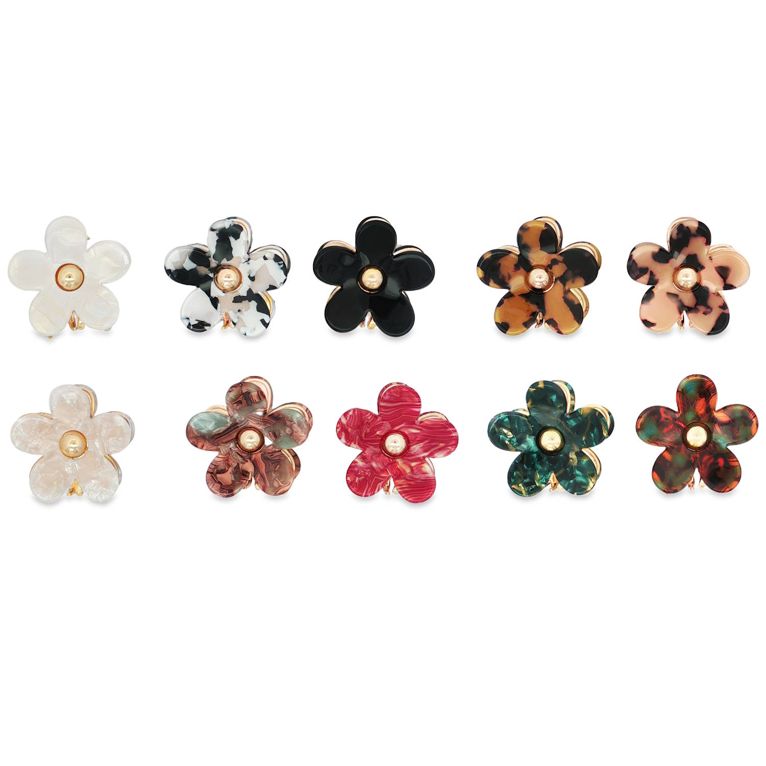 Description Ajoutez une touche florale à votre style avec cette adorable pince crabe. Confectionnée avec un matériau non métallique et ornée d'une subtile touche dorée, cette pince apporte une élégance discrète à votre look quotidien. 10 coloris différents. Vendu à l'unité. Votre préférence en commentaire. Cliquez sur une matière, un thème, une couleur ou une collection pour voir tous les articles associés.