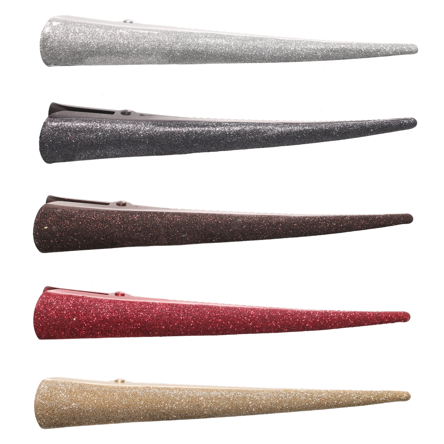 DescriptionPince à cheveux en métal de couleur brillant.