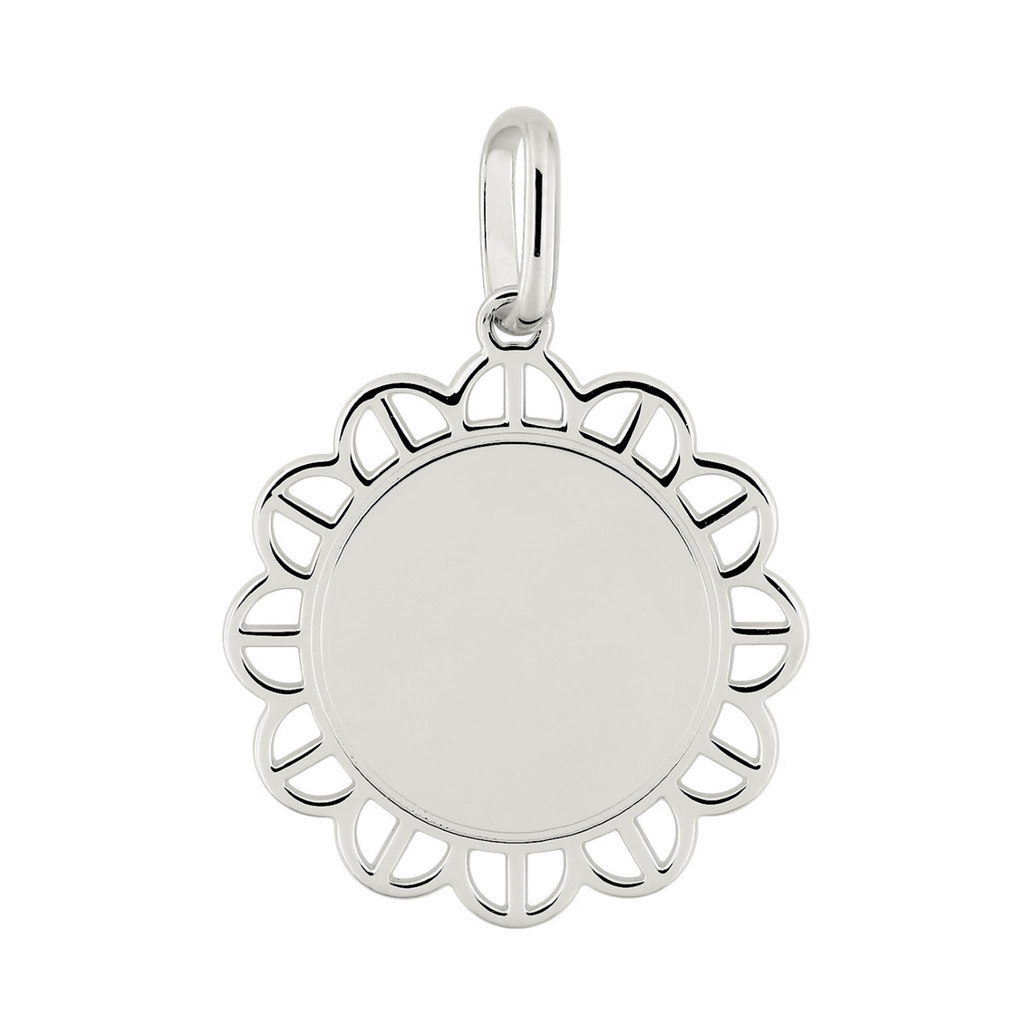 Pendentif en argent 925/000 rhodié. Rond  Adolescent Adulte Femme Fille Gravure Indémodable