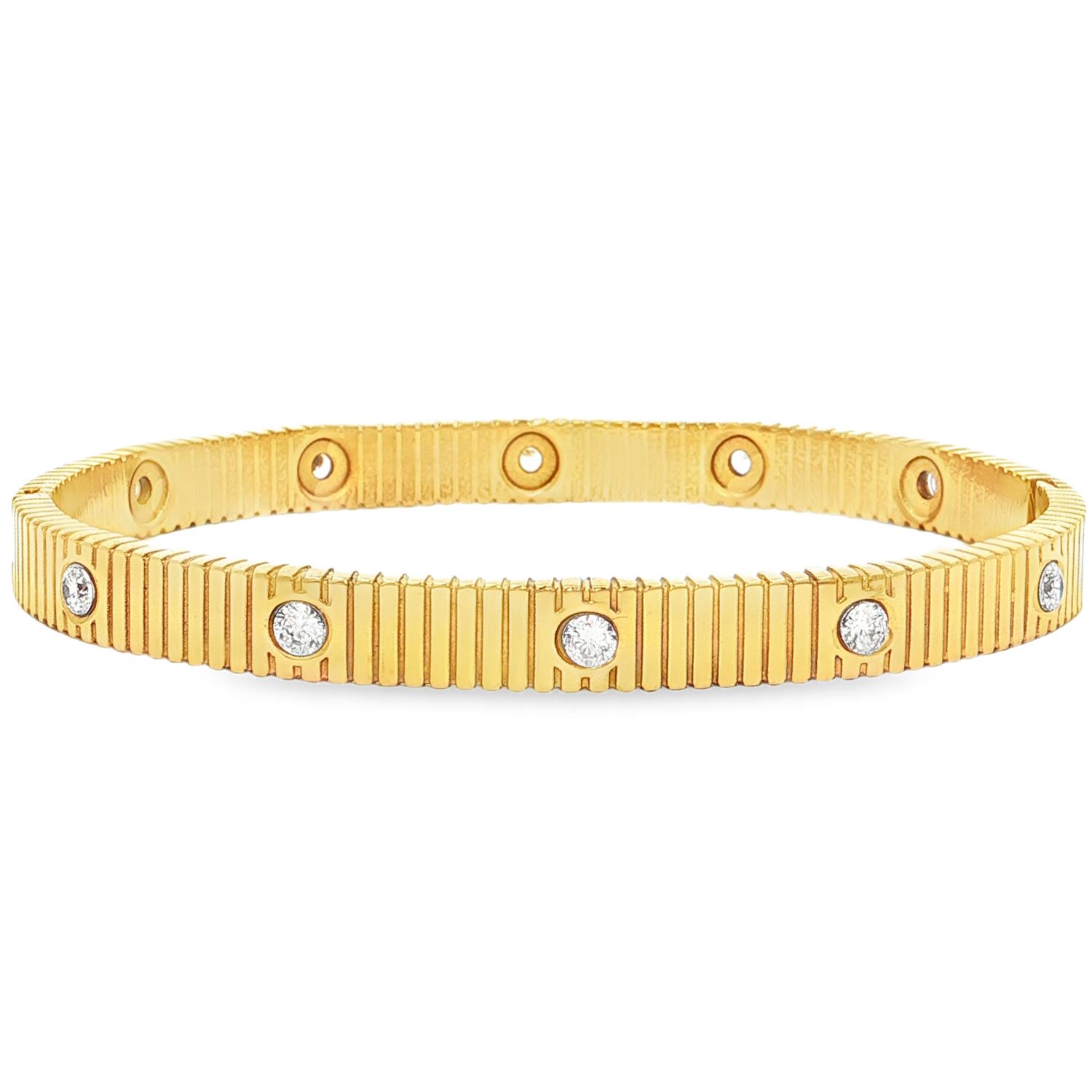 Description Sublime bracelet jonc en acier doré, caractérisé par son design linéaire et épuré. Les strass ronds taille brillant sertis avec précision illuminent ce bijou d'une brillance exceptionnelle. Un accessoire luxueux et intemporel, symbole d'élégance et de raffinement. Largeur 6 mm Diamètre 60 mm [Guide des tailles] Matière(s) Acier , Verre . L'acier utilisé dans la bijouterie existe sous plusieurs qualités. Nous utilisons principalement la qualité 316L, qualité qui est utilisée en chirurgie. Cet acier est donc inoxydable et reste très résistant. Fermoir Charnière Couleur(s) dominante(s) Doré Public Adolescent , Adulte . Genre Femme , Fille . Saison Indémodable . Cliquez sur une matière, un thème, une couleur ou une collection pour voir tous les articles associés.