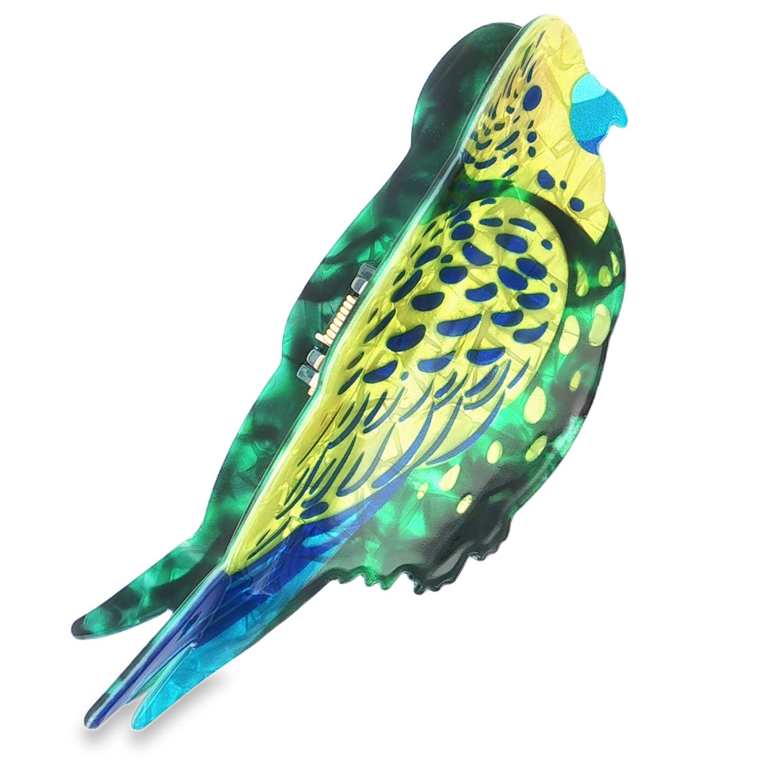 DescriptionMagnifique pince crabe pour cheveux représentant un perroquet de couleurs vives et nacrées.Cliquez sur une matière, un thème, une couleur ou une collection pour voir tous les articles associés.