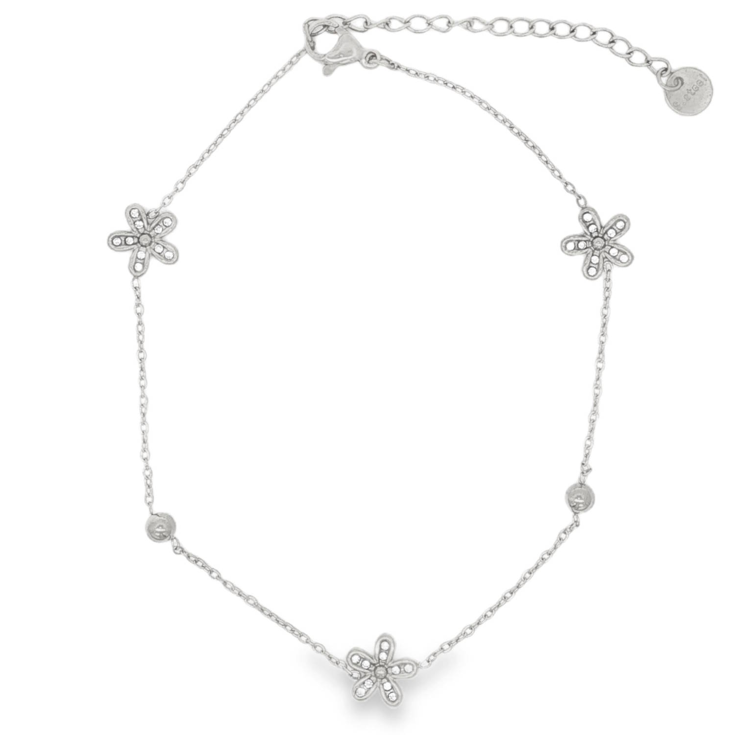 Ce somptueux bracelet chaîne de cheville en acier argenté se distingue par son élégance intemporelle. Sa structure raffinée accueille une série de fleurs serties de strass.<br/>Son éclat chaleureux et son design intemporel en font un accessoire polyvalent, idéal pour sublimer la cheville avec discrétion et raffinement professionnel.<br/>Fermoir mousqueton avec 5 cm de rallonge. Cheville Strass  Adolescent Adulte Femme Fille Fleurs Indémodable Nature Ce somptueux bracelet chaîne de cheville en acier argenté se distingue par son élégance intemporelle. Sa structure raffinée accueille une série de fleurs serties de strass.<br/>Son éclat chaleureux et son design intemporel en font un accessoire polyvalent, idéal pour sublimer la cheville avec discrétion et raffinement professionnel.<br/>Fermoir mousqueton avec 5 cm de rallonge. Cheville Strass  Adolescent Adulte Femme Fille Fleurs Indémodable Nature