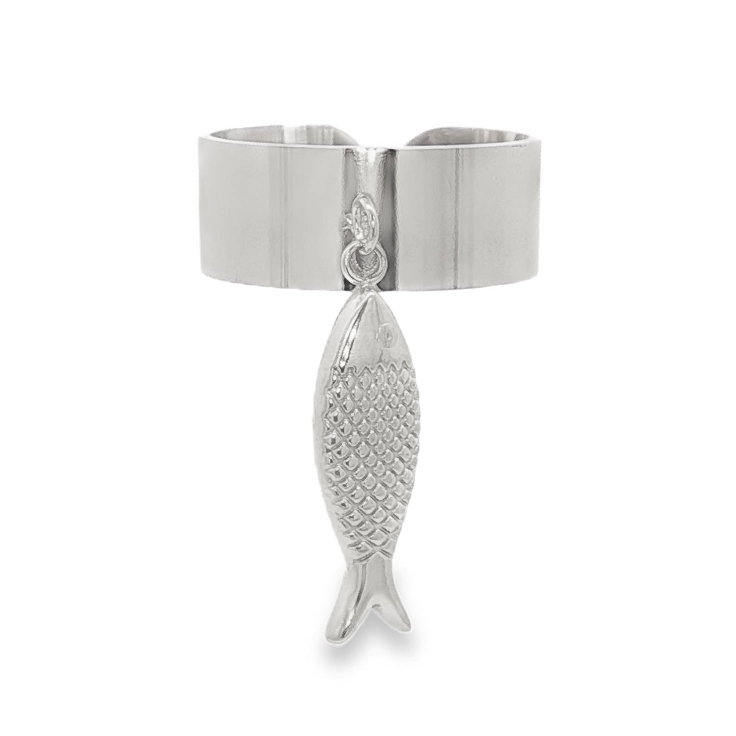 Description Cette bague est une pièce au design à la fois moderne et original, parfaite pour ceux qui aiment les bijoux qui sortent de l'ordinaire. La particularité de ce bijou réside dans son charm mobile : un petit poisson finement détaillé. On y distingue des gravures simulant les écailles, apportant une texture intéressante qui contraste avec le poli miroir de l'anneau. Sa structure est ajustable grâce à son ouverture discrète à l'arrière, ce qui permet de l'adapter facilement à différentes tailles de doigts. Largeur 8 mm Matière(s) Acier . L'acier utilisé dans la bijouterie existe sous plusieurs qualités. Nous utilisons principalement la qualité 316L, qualité qui est utilisée en chirurgie. Cet acier est donc inoxydable et reste très résistant. Fermoir Aucun À noter Pendentif 6x20 mm Couleur(s) dominante(s) Argenté Public Adolescent , Adulte . Genre Femme , Fille . Saison Eté , Printemps . Thème(s) Animaux , Nature . Collection Seaside Cliquez sur une matière, un thème, une couleur ou une collection pour voir tous les articles associés.