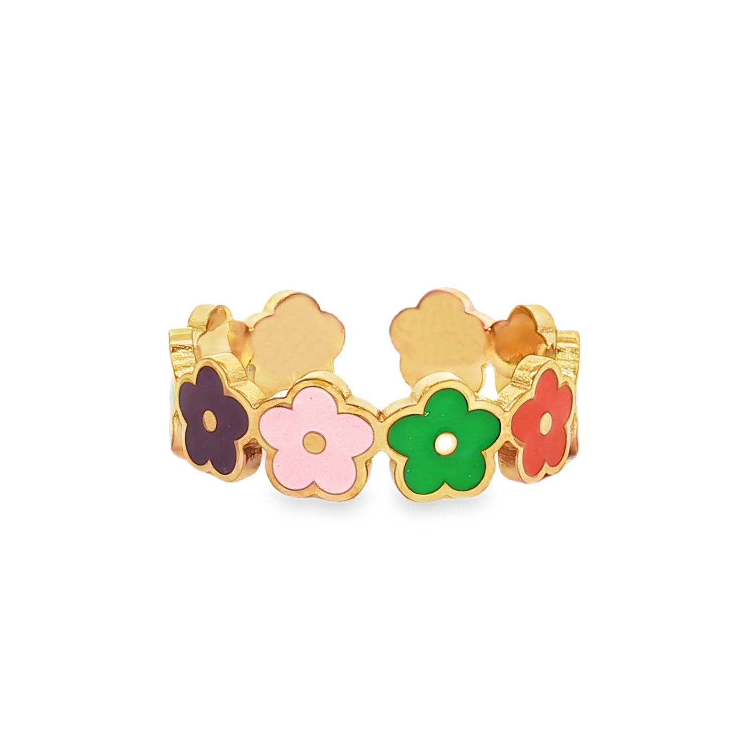 Chaque fleur est délicatement ornée d'un insert en émail aux couleurs vives. Ces touches colorées contrastent magnifiquement avec la finition dorée.