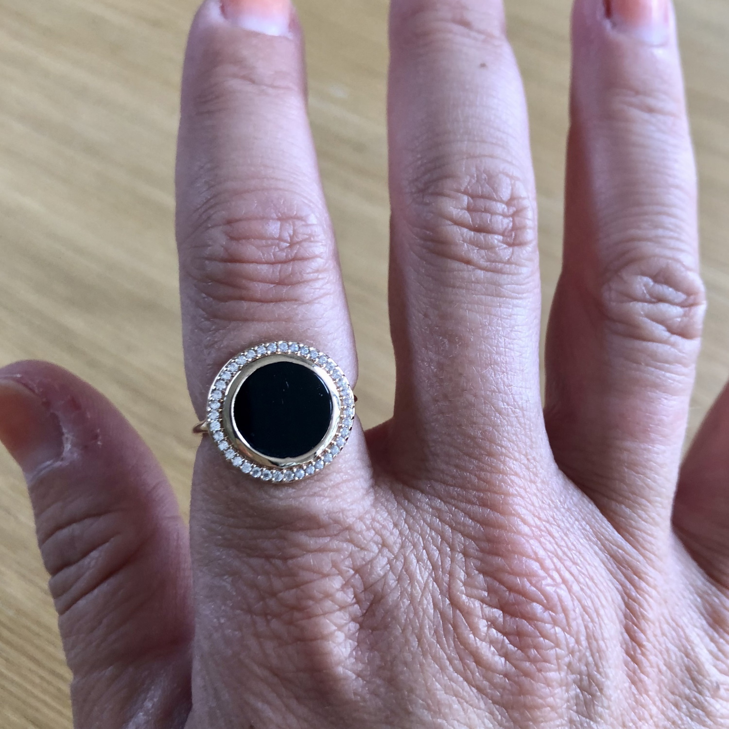 Description Bague de forme ronde en plaqué or jaune 18 carats surmontées d'une pierre de couleur noire de forme ronde lisse entourée d'oxydes de zirconium blancs. Largeur 16 mm Matière(s) Pierre naturelle , Plaqué or , Zirconium . Nos bijoux en plaqué or sont faits sur une base de laiton et recouverts d'or 18 carats à 3 microns sans dispersion. Cela signifie que nous garantissons 3 microns d'or sur n'importe quelle partie du bijou. Sur la plupart de nos bijoux empierrés, nous montons à 5 microns d'or 18 carats. Pour finir, nous faisons également une finition avec de l'or 24 carats afin de donner un plus bel éclat à nos bijoux. Couleur(s) dominante(s) Doré , Noir Public Adolescent , Adulte . Genre Femme , Fille . Saison Indémodable . Cliquez sur une matière, un thème, une couleur ou une collection pour voir tous les articles associés.