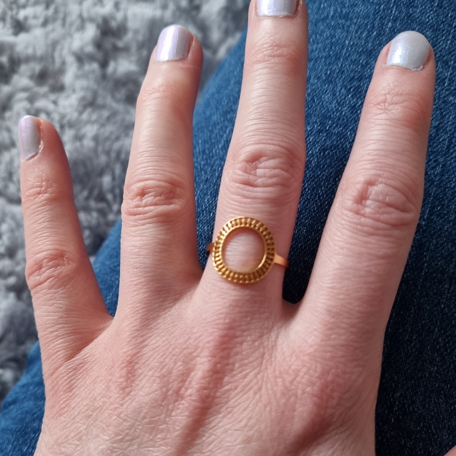 Description Bague avec cercle large aux motifs ajourés en acier doré. Taille ajustable. Largeur 13 mm Matière(s) Acier . L'acier utilisé dans la bijouterie existe sous plusieurs qualités. Nous utilisons principalement la qualité 316L, qualité qui est utilisée en chirurgie. Cet acier est donc inoxydable et reste très résistant. Fermoir Aucun Couleur(s) dominante(s) Doré Public Adolescent , Adulte . Genre Femme , Fille . Saison Indémodable . Cliquez sur une matière, un thème, une couleur ou une collection pour voir tous les articles associés.
