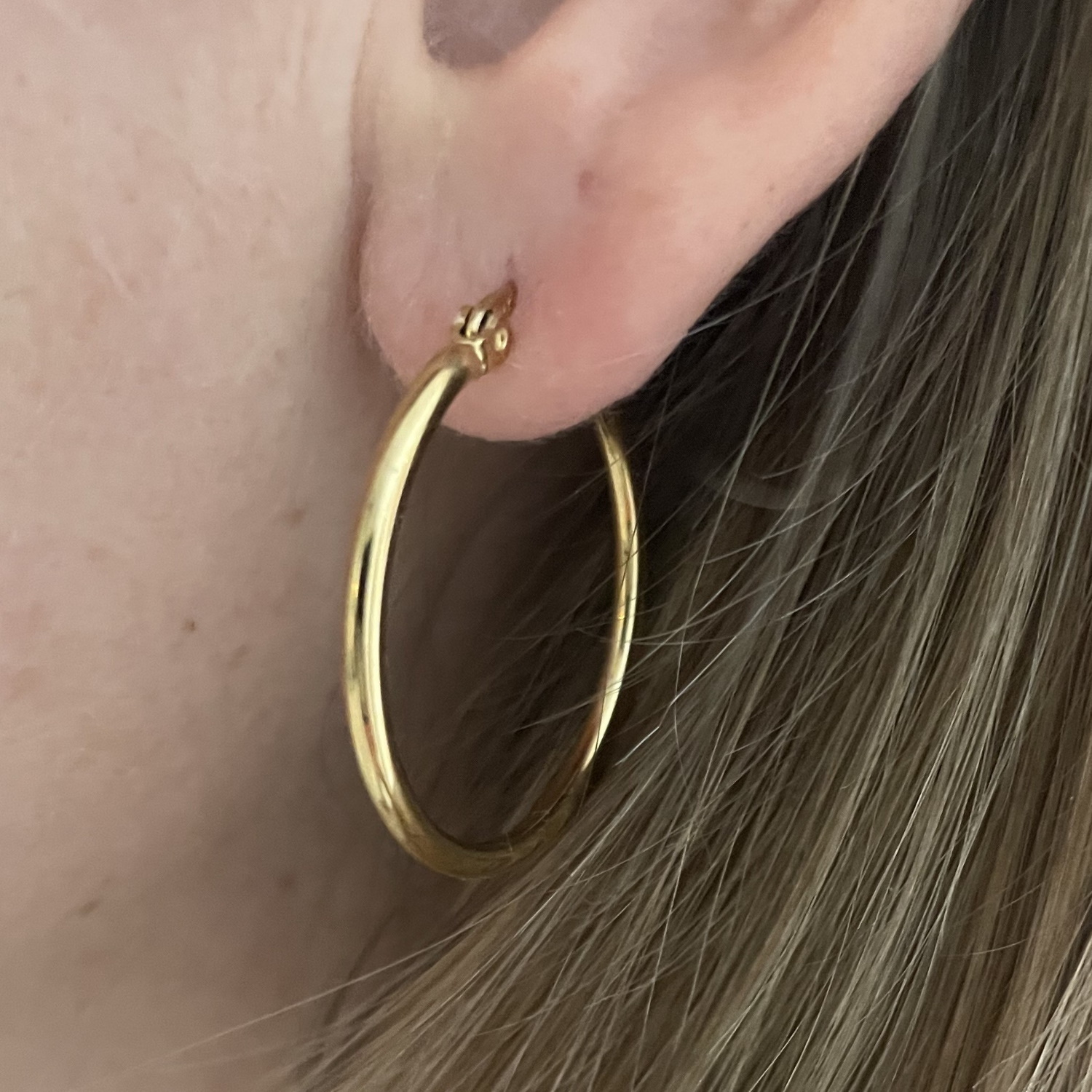 Description Boucles d'oreilles créoles fil rond en acier doré. Largeur 2 mm Diamètre 25 mm [Guide des tailles] Matière(s) Acier . L'acier utilisé dans la bijouterie existe sous plusieurs qualités. Nous utilisons principalement la qualité 316L, qualité qui est utilisée en chirurgie. Cet acier est donc inoxydable et reste très résistant. Fermoir Charnière avec cran Couleur(s) dominante(s) Doré Public Adolescent , Adulte . Genre Femme , Fille . Saison Indémodable . Cliquez sur une matière, un thème, une couleur ou une collection pour voir tous les articles associés.