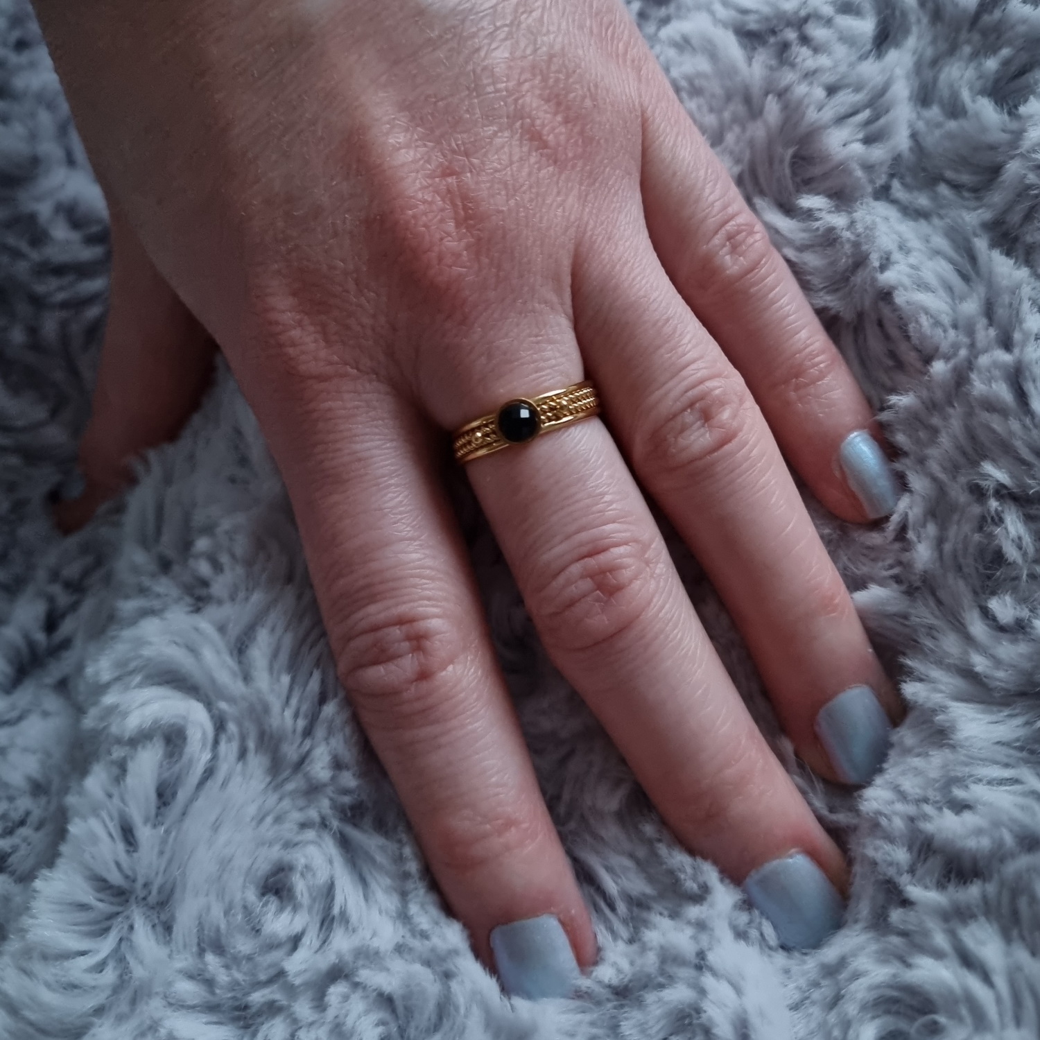 Description Bague en acier doré surmontée d'une pierre de couleur noire sertie clos de forme ronde. Taille ajustable. Largeur 6 mm Matière(s) Acier , Rocaille . L'acier utilisé dans la bijouterie existe sous plusieurs qualités. Nous utilisons principalement la qualité 316L, qualité qui est utilisée en chirurgie. Cet acier est donc inoxydable et reste très résistant. Fermoir Aucun Couleur(s) dominante(s) Doré , Noir Public Adolescent , Adulte . Genre Femme , Fille . Saison Indémodable . Cliquez sur une matière, un thème, une couleur ou une collection pour voir tous les articles associés.