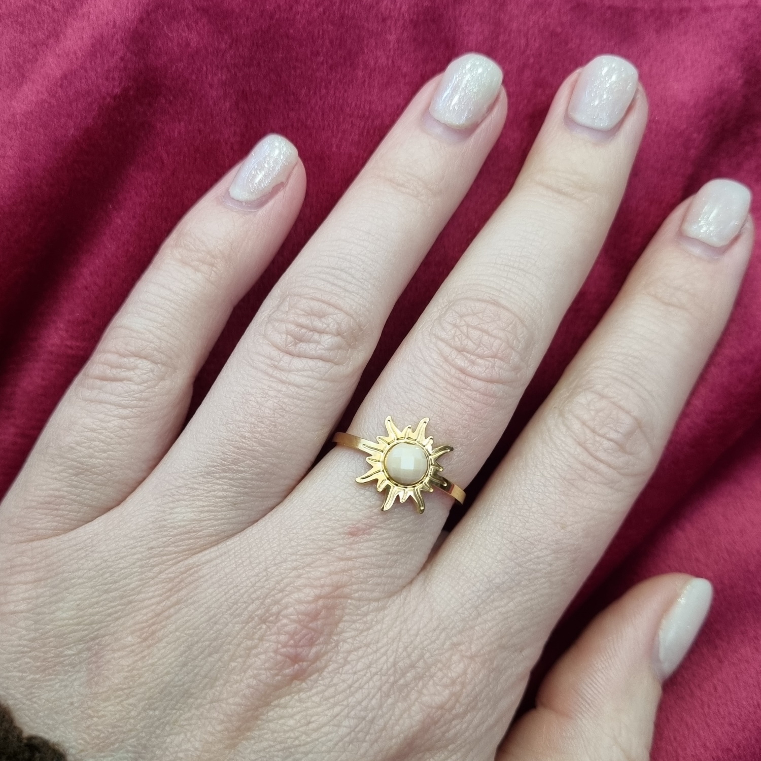 Description Bague en forme de soleil en acier doré surmontée d'une pierre de couleur blanche. Taille ajustable. Largeur 13 mm Matière(s) Acier , Rocaille . L'acier utilisé dans la bijouterie existe sous plusieurs qualités. Nous utilisons principalement la qualité 316L, qualité qui est utilisée en chirurgie. Cet acier est donc inoxydable et reste très résistant. Fermoir Aucun Couleur(s) dominante(s) Blanc , Doré Public Adolescent , Adulte . Genre Femme , Fille . Saison Indémodable . Thème(s) Nature . Cliquez sur une matière, un thème, une couleur ou une collection pour voir tous les articles associés.