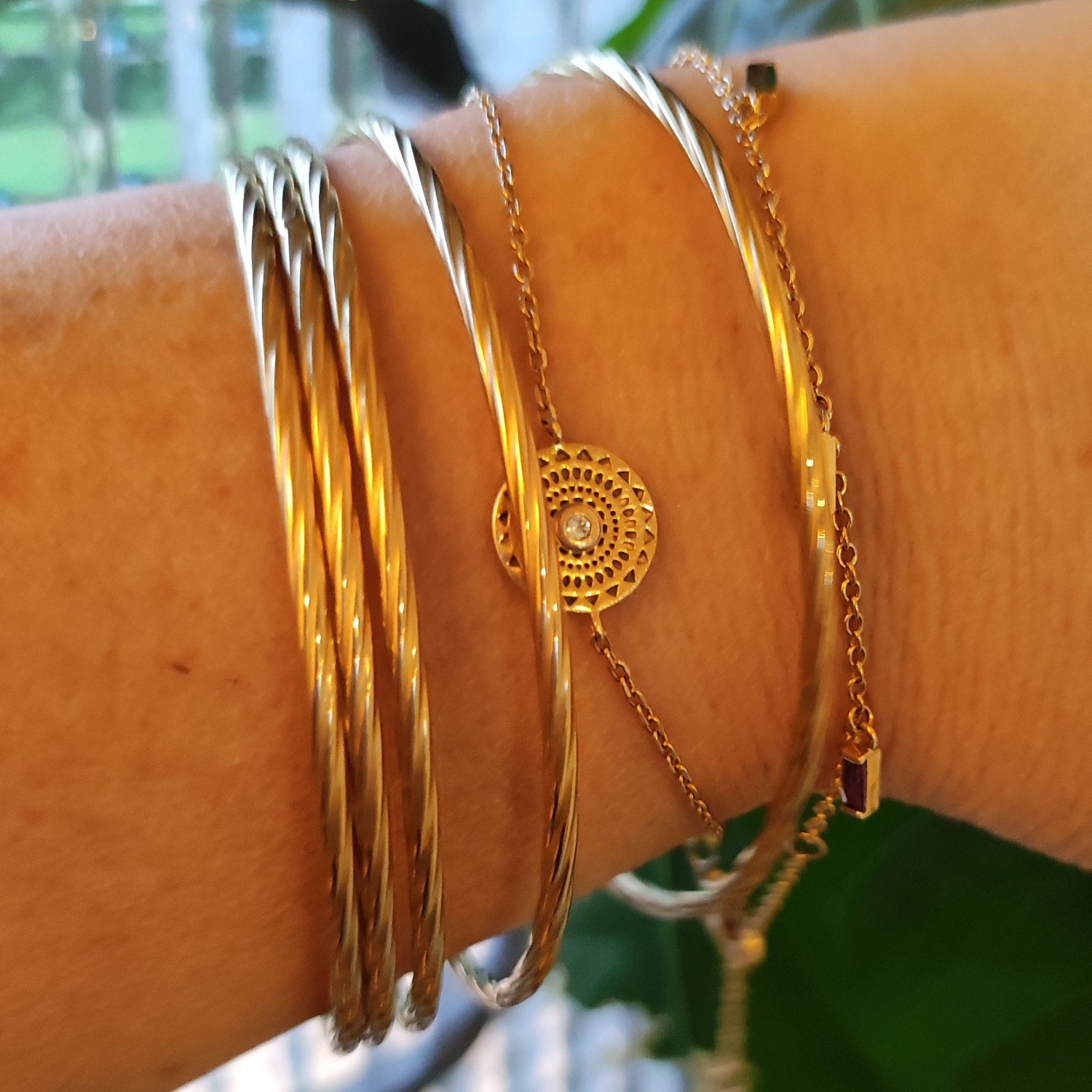 Description Lot de 5 bracelets joncs fermés en acier doré. Largeur 11 mm Diamètre 65 mm [Guide des tailles] Matière(s) Acier . L'acier utilisé dans la bijouterie existe sous plusieurs qualités. Nous utilisons principalement la qualité 316L, qualité qui est utilisée en chirurgie. Cet acier est donc inoxydable et reste très résistant. Fermoir Aucun Couleur(s) dominante(s) Doré Public Adolescent , Adulte . Genre Femme , Fille . Saison Indémodable . Rayon en magasin TL Cliquez sur une matière, un thème, une couleur ou une collection pour voir tous les articles associés.