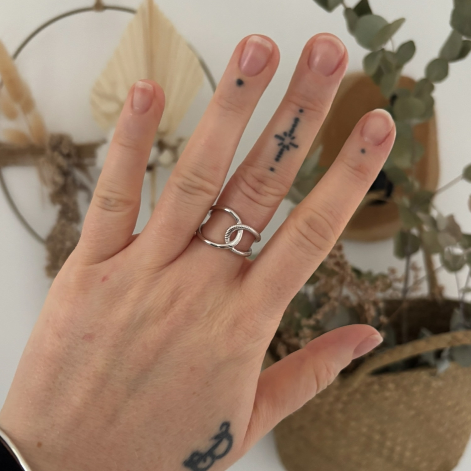 Description Bague avec anneaux entrecroisés en argent 925 rhodié. Largeur 9 mm Matière(s) Argent 925 rhodié . Afin de protéger votre bijou de l'oxydation naturelle de l'argent, il est recouvert d'une couche de rhodium (un métal rare et précieux) qui garantira sa brillance dans le temps et préviendra les risques d'allergie. Notez cependant, que le bijou est alors d'une teinte plus grisée et moins brillante que l'argent non rhodié. Poids d'argent 5,04 gramme(s) Couleur(s) dominante(s) Argenté Public Adolescent , Adulte . Genre Femme , Fille . Saison Indémodable . Cliquez sur une matière, un thème, une couleur ou une collection pour voir tous les articles associés.