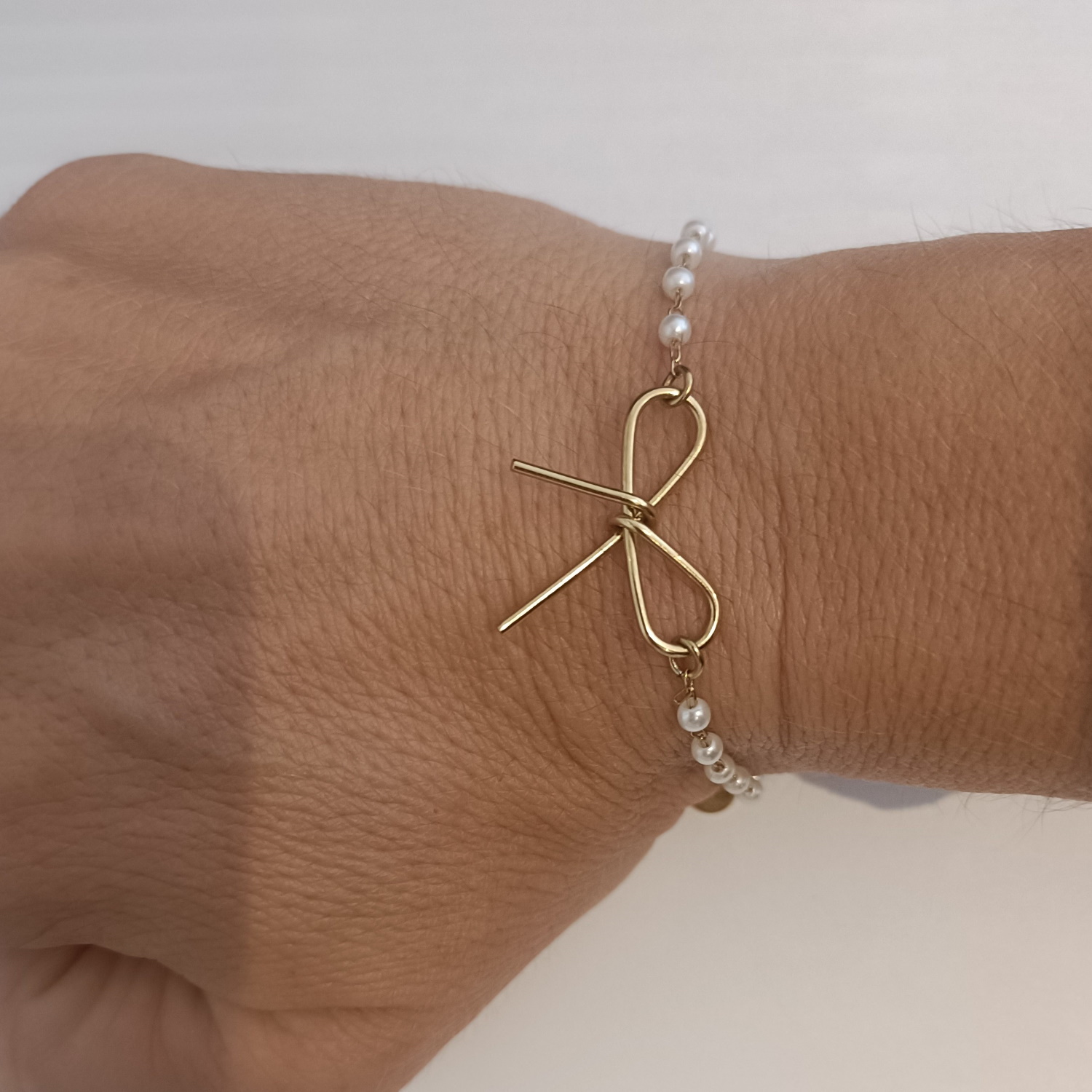 Description Bracelet composé d'une chaîne en acier doré, de perles d'imitation et d'un nœud papillon en acier doré. Fermoir mousqueton avec 3 cm de rallonge. Cliquez sur une matière, un thème, une couleur ou une collection pour voir tous les articles associés.