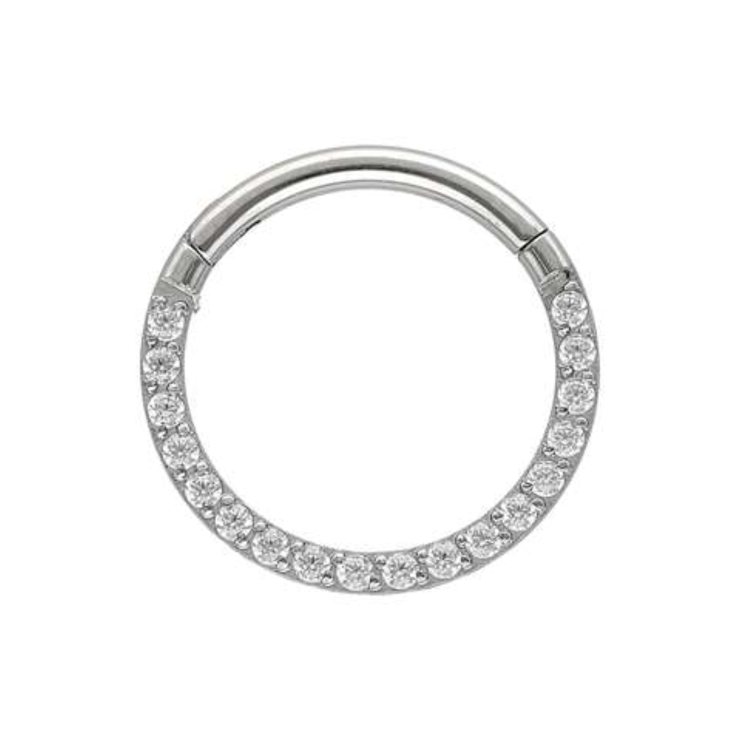 Piercing pour nez ou oreille en acier chirurgical argenté serti d'oxydes de zirconium blancs.
