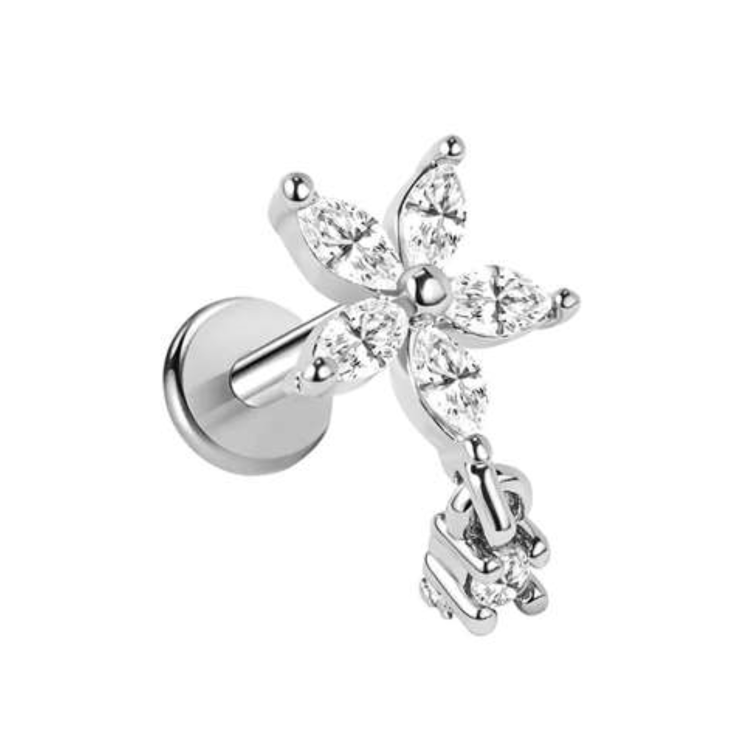 Description Piercing pour oreille et nombril en forme de fleur en acier chirurgical argenté serti d'oxyde de zirconium blanc. Largeur 7 mm Hauteur 10 mm Matière(s) Acier , Zirconium . L'acier utilisé dans la bijouterie existe sous plusieurs qualités. Nous utilisons principalement la qualité 316L, qualité qui est utilisée en chirurgie. Cet acier est donc inoxydable et reste très résistant. Fermoir A vis À noter Piercing 1 mm Couleur(s) dominante(s) Argenté Public Adolescent , Adulte . Genre Femme , Fille . Saison Indémodable . Thème(s) Fleurs , Nature . Cliquez sur une matière, un thème, une couleur ou une collection pour voir tous les articles associés.