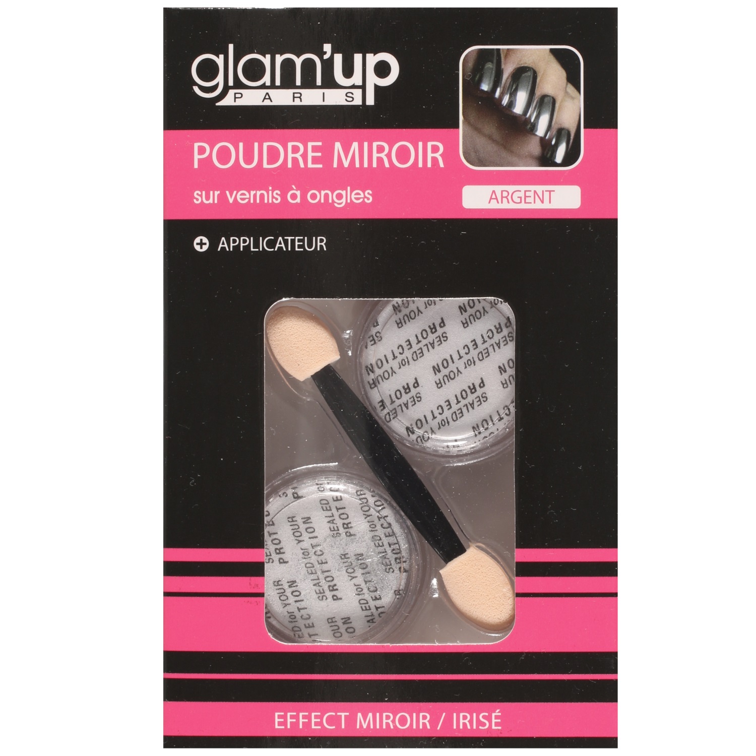 Description Poudre miroir sur vernis à ongles de couleur argent pour finition miroir ou irisé. Cliquez sur une matière, un thème, une couleur ou une collection pour voir tous les articles associés.