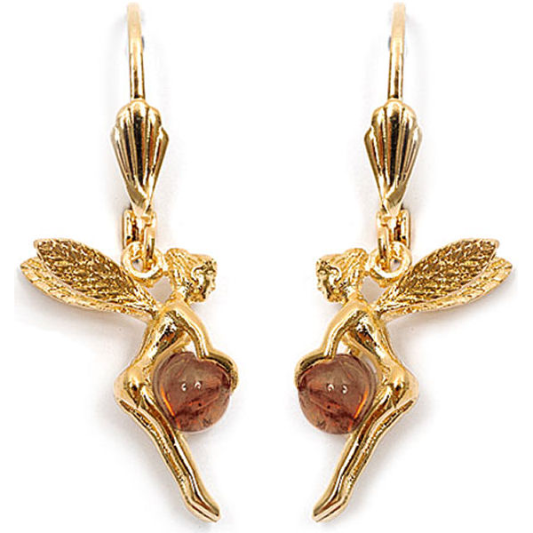 Boucles d'oreilles dormeuses en plaqué-or et pierre d'ambre.