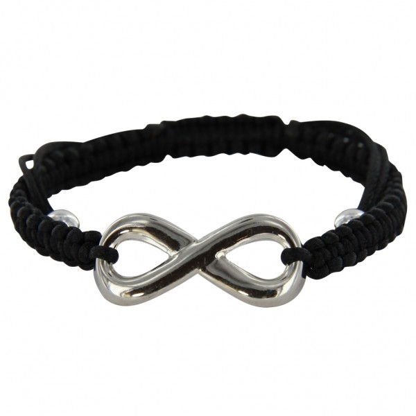 Bracelet fantaisie en métal argenté et textile.