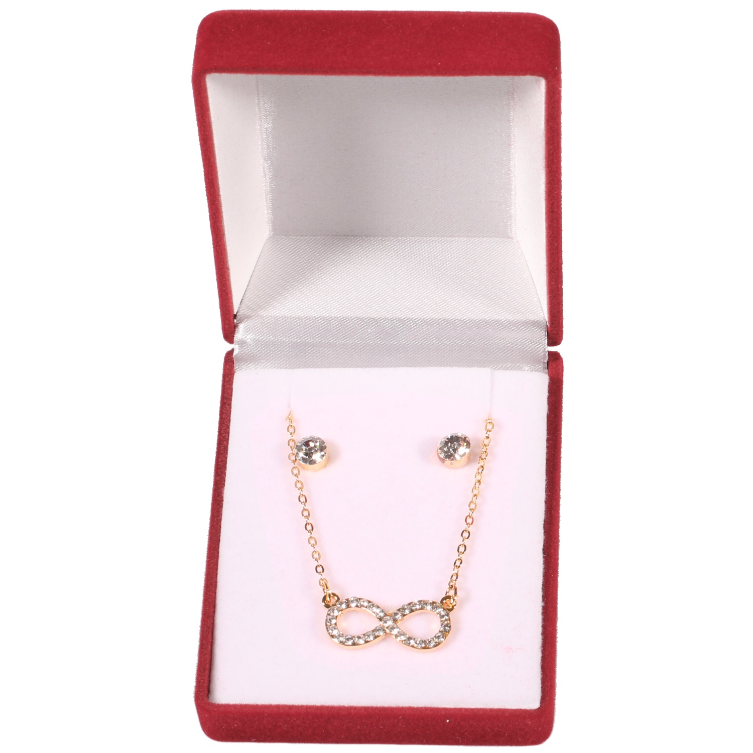 Parure composée d'un collier et boucles d'oreilles en métal doré et cristaux synthétiques.