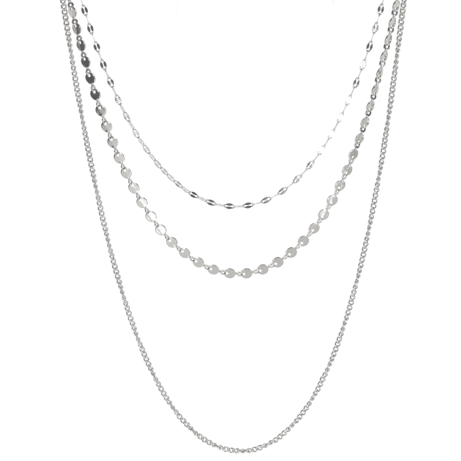 Description Collier sautoir triple rangs composé d'une chaîne de 38 cm de long en acier argenté, d'une chaîne de mini pastilles de 42 cm de long en acier argenté, ainsi qu'une chaîne de 54 cm de long en acier argenté. Fermoir mousqueton avec 6 cm de rallonge. Longueur 38+6 cm [Guide des tailles] Matière(s) Acier . L'acier utilisé dans la bijouterie existe sous plusieurs qualités. Nous utilisons principalement la qualité 316L, qualité qui est utilisée en chirurgie. Cet acier est donc inoxydable et reste très résistant. Fermoir Mousqueton Couleur(s) dominante(s) Argenté Public Adolescent , Adulte . Genre Femme , Fille . Saison Indémodable . Cliquez sur une matière, un thème, une couleur ou une collection pour voir tous les articles associés.