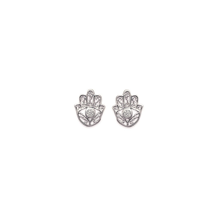 Boucles d'oreilles en argent 925/000 et oxyde de zirconium.<br/>Fermoir tige/poussette.<br/>Main de Fatma. Fatma Main Oeil  Adulte Femme Indémodable Religion