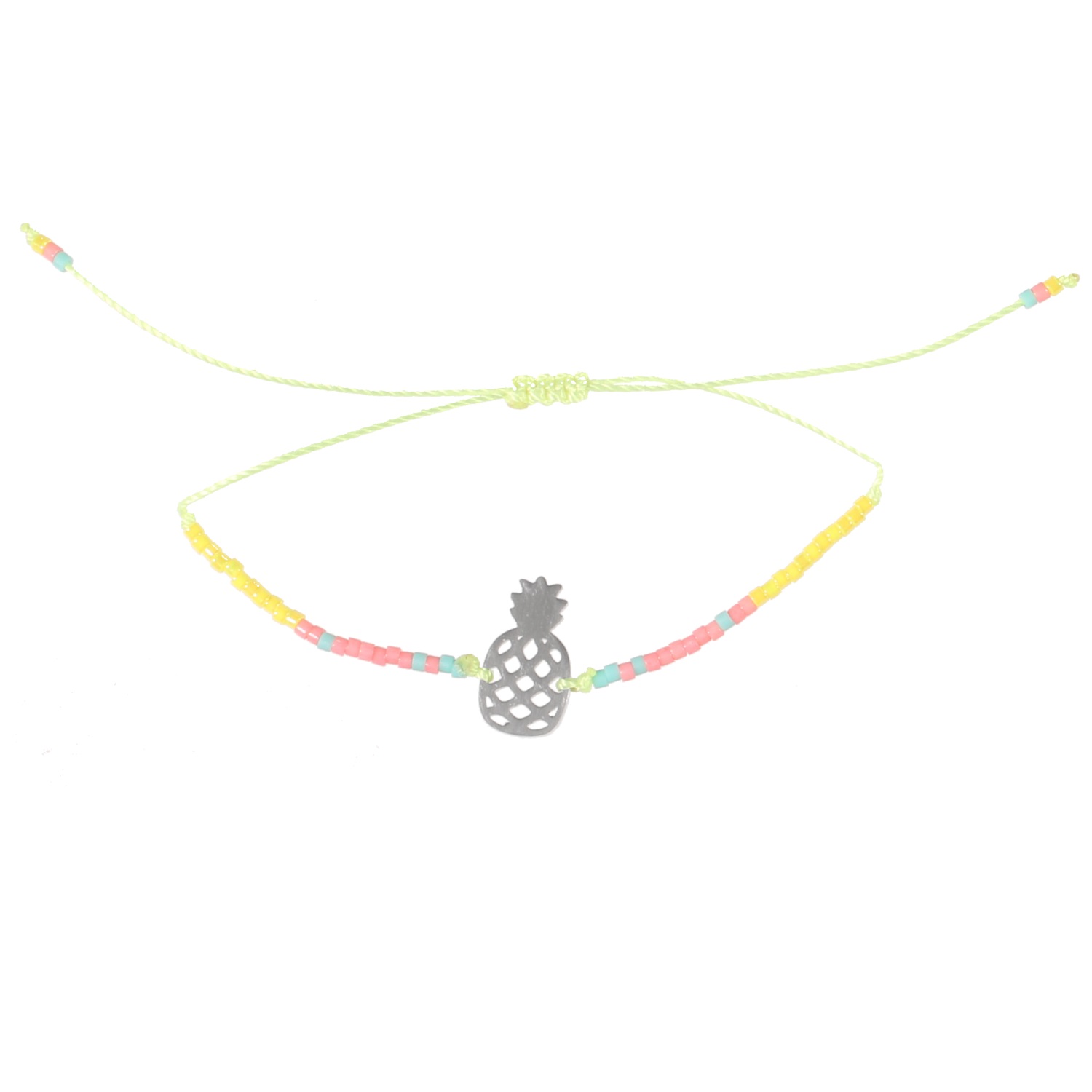 Bracelet Ananas en acier, pierres synthétiques et textile.