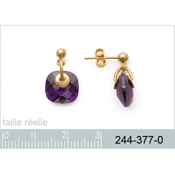 Boucles d'oreilles en plaqué-or et pierres synthétiques.